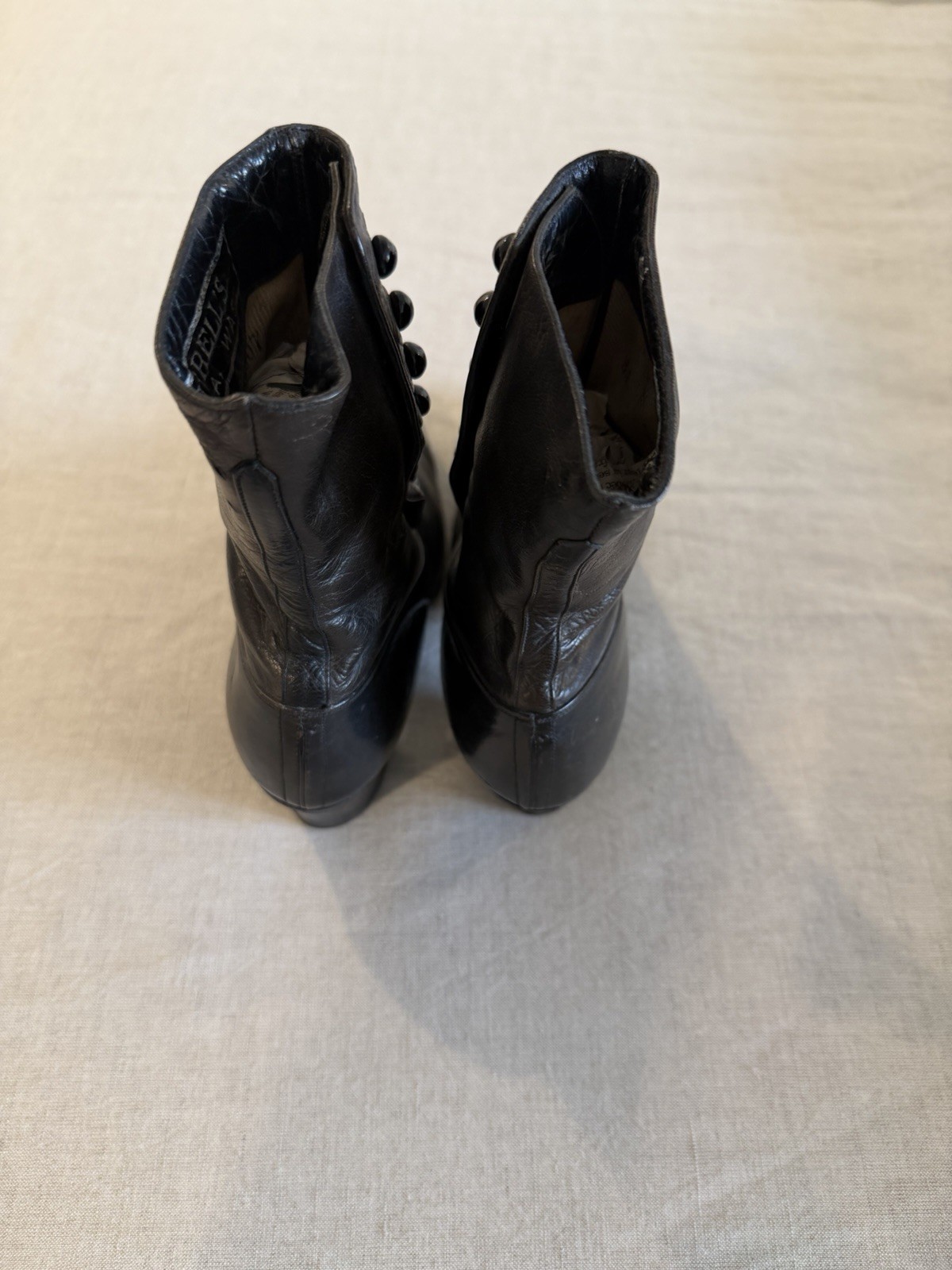 как выглядит Black Button Up Ladies Boots Pointed 1800s Antique Victorian Watson Plummer фото