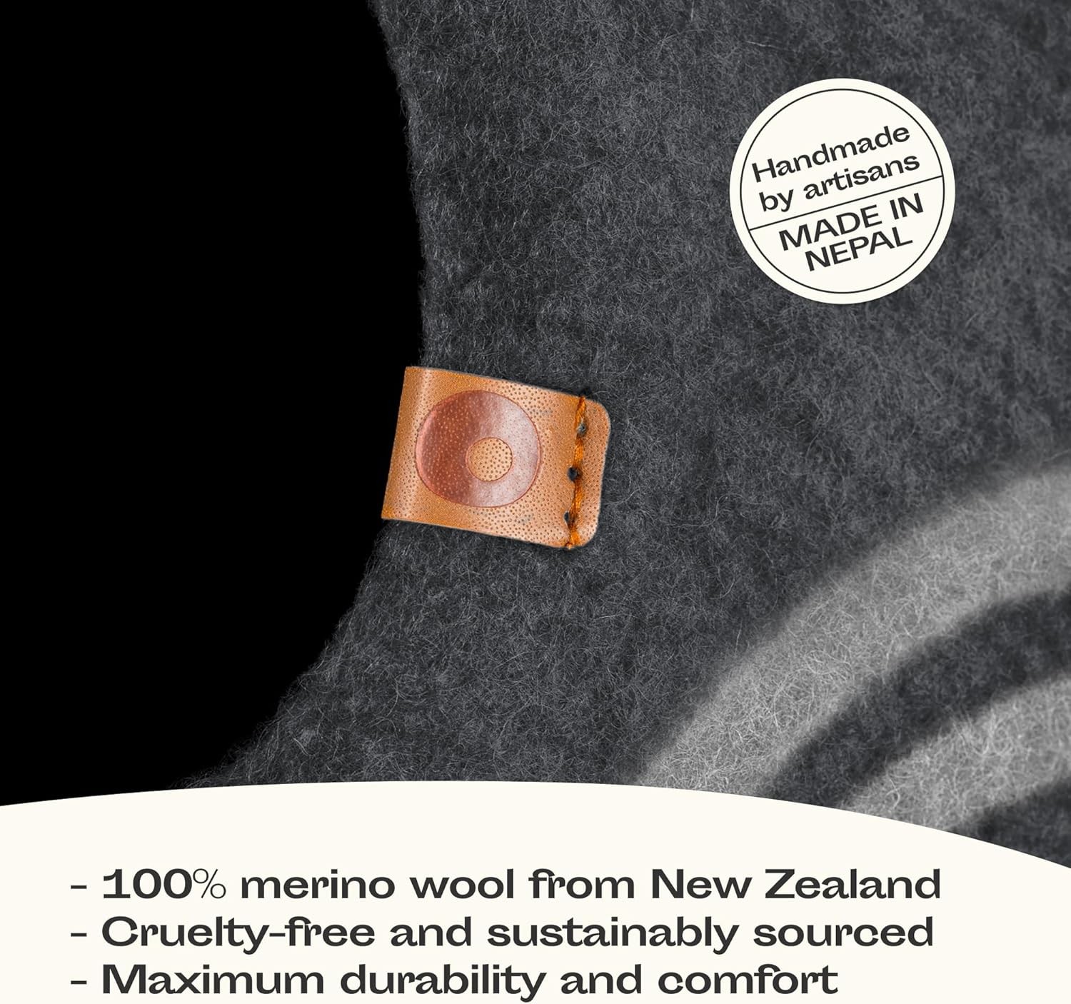 Premium Cat Cave - Handmade Dark Grey 100 Merino Wool Bed