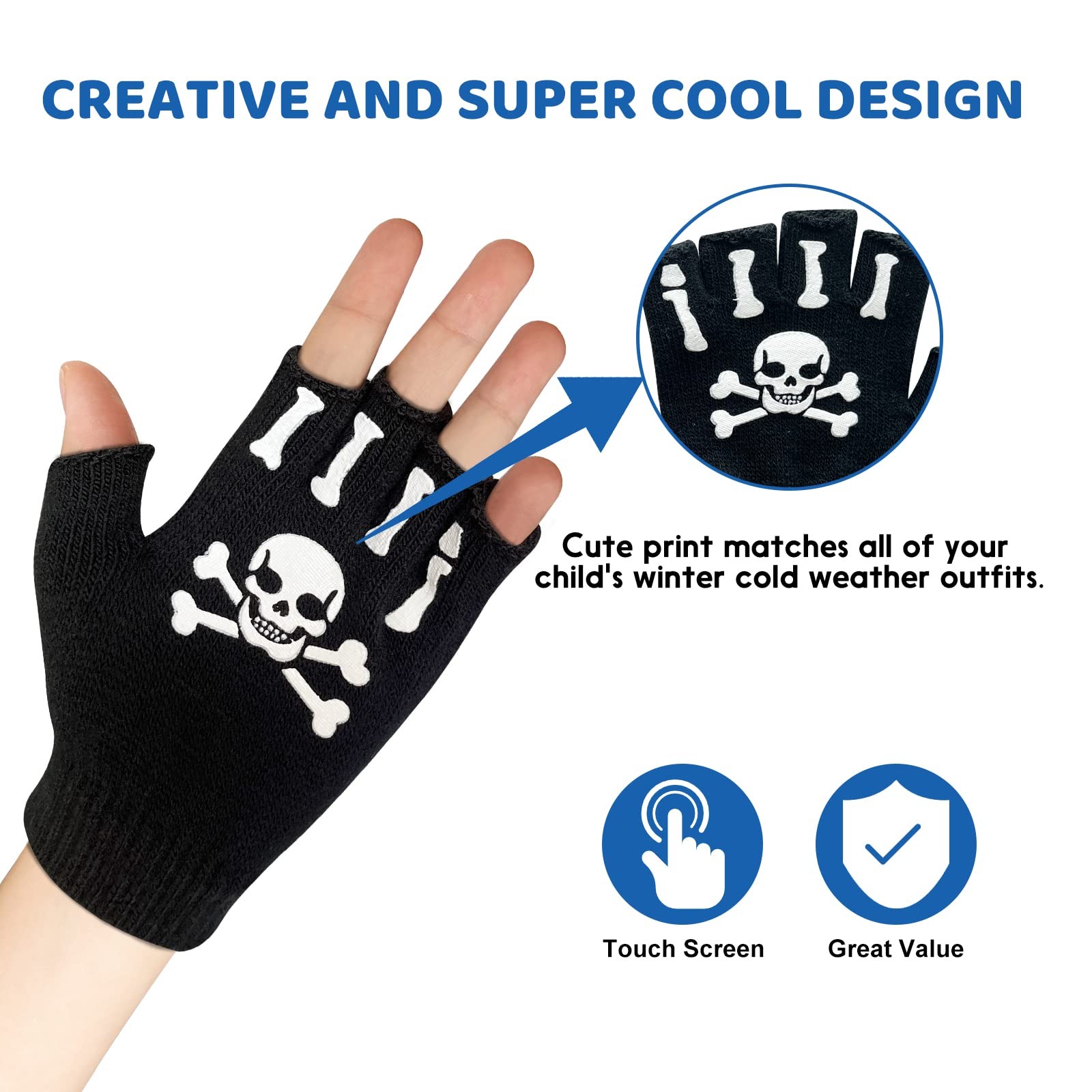 Kids' Fingerless Winter Gloves Warm and Grippy for Touchscreens 3 Pairs