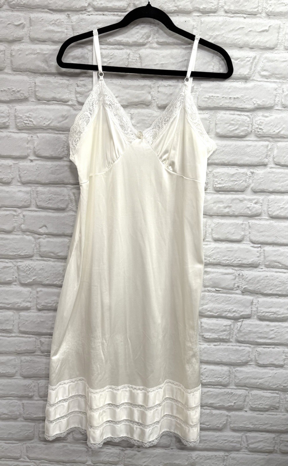 как выглядит Vtg Adonna Ivory Lace Full Slip Lingerie Nightgown Sleepwear Undergarment Sz 38 фото