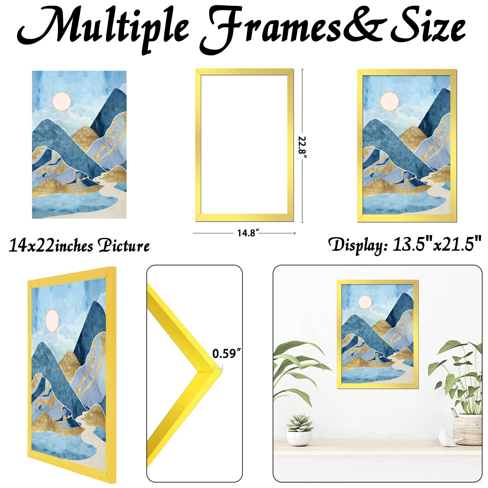 Keibiubu 14x22 Gold Picture Frame for Photo Poster Canvas Certificates