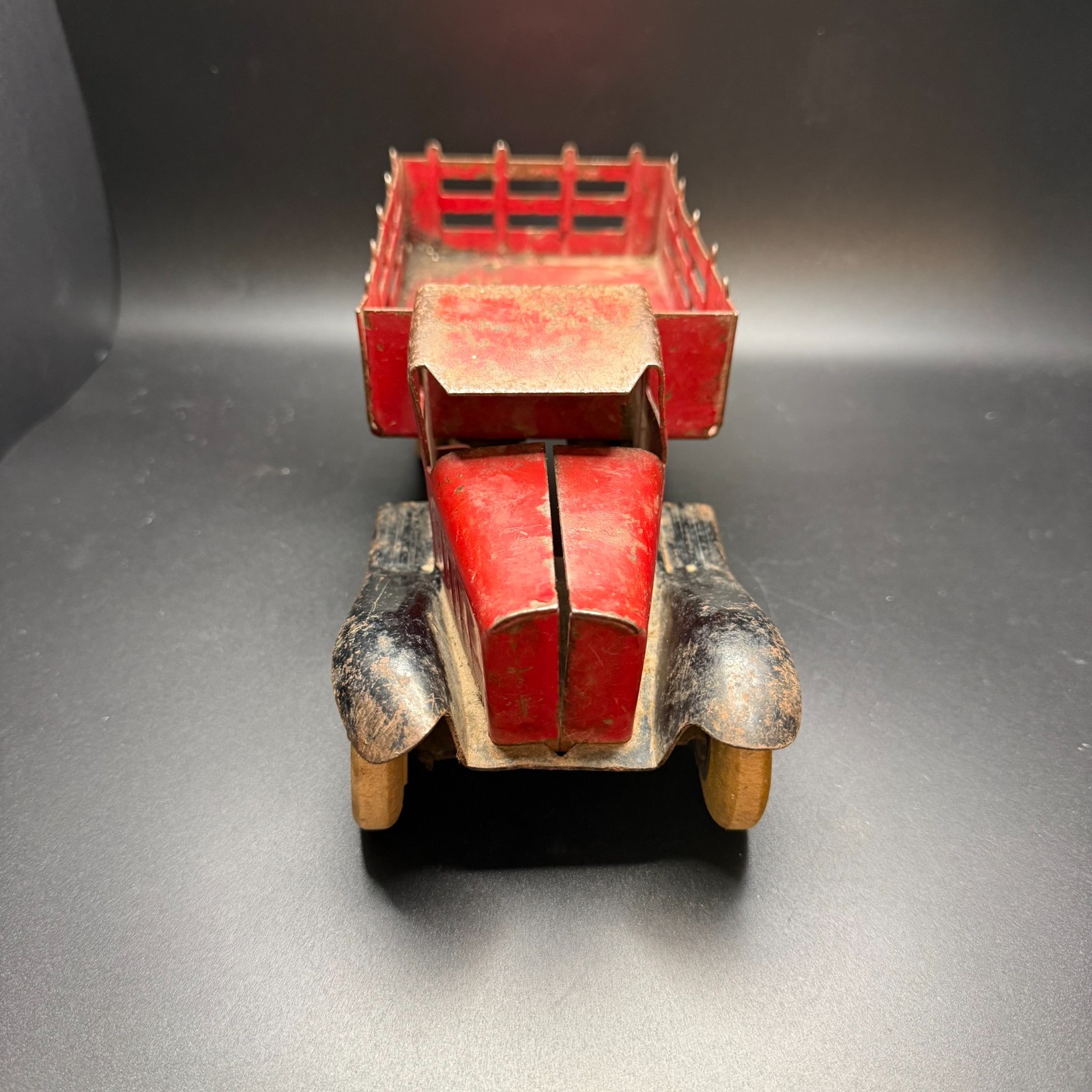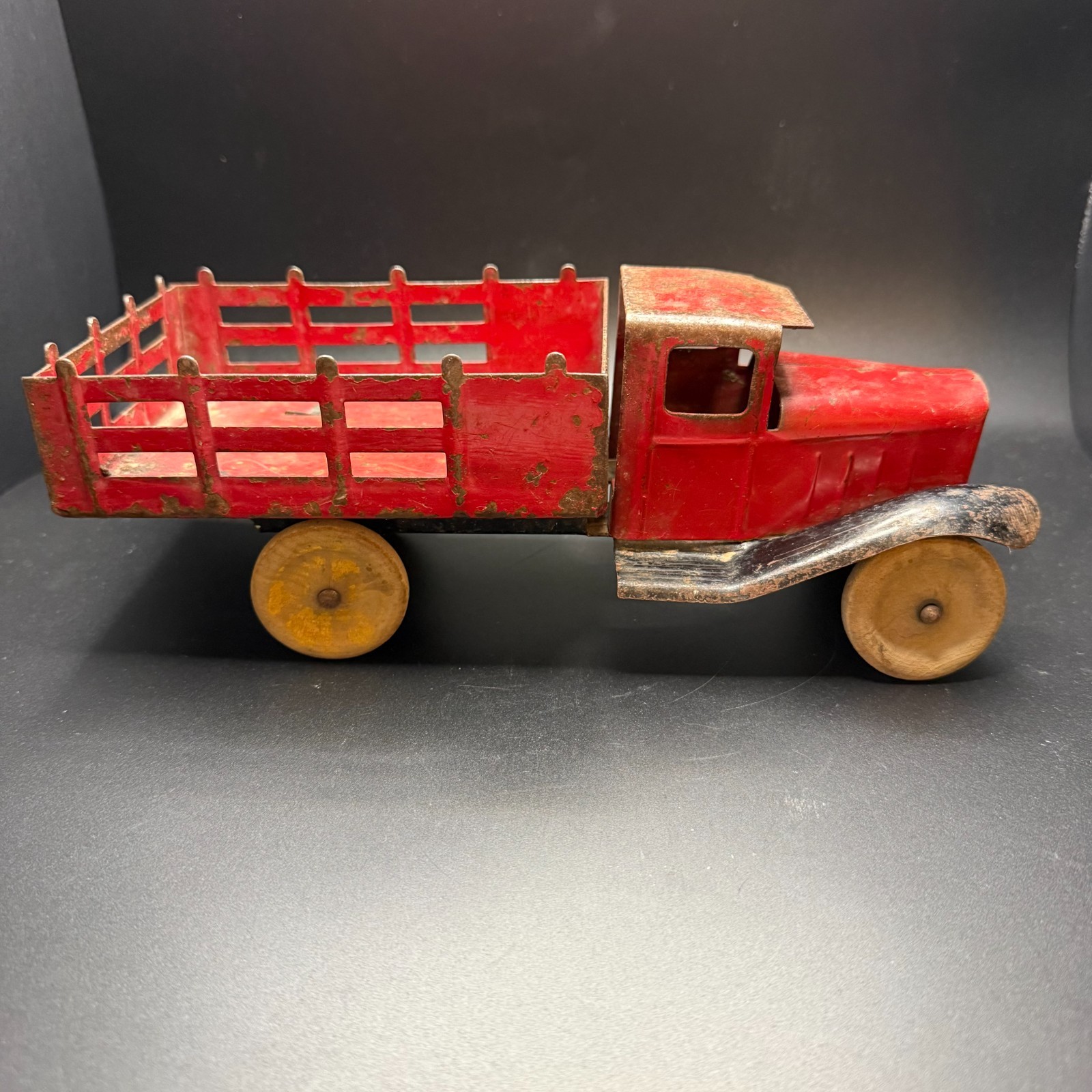 Wyandotte Pressed Steel 10 Stake Bed Toy Truck 30s 40s Red w/Yellow Wood Wheels