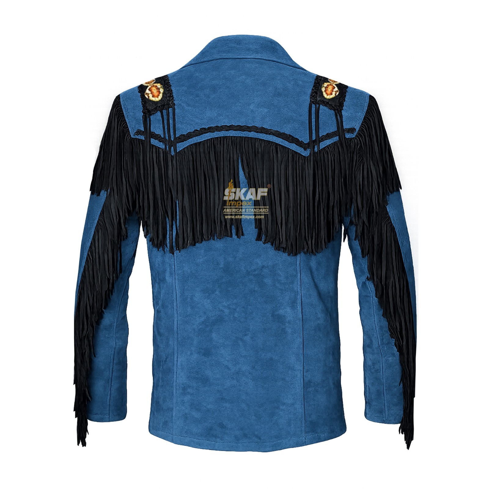 Blue suede jacket with black fringe Bone Beads Cowboy Westerns Native American