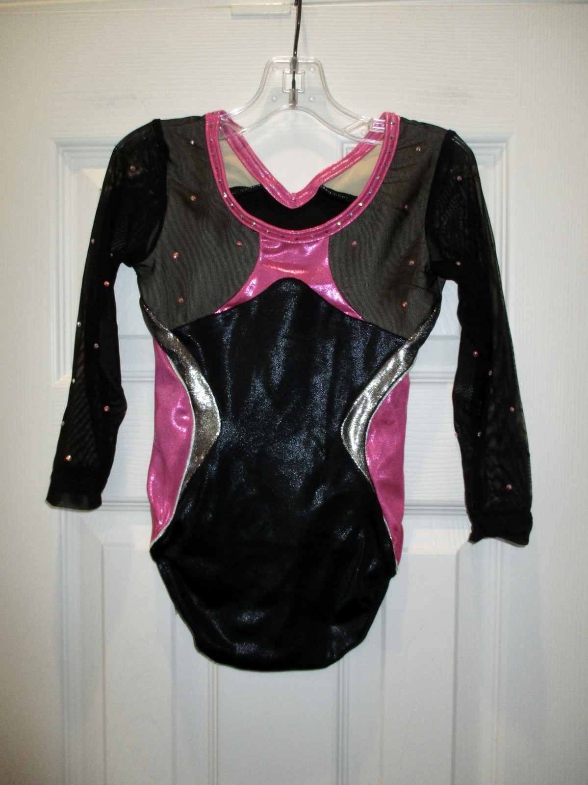 как выглядит Under Armour CM Pink Black Leotard Long Sleeve Rhinestones Gymnastic Competition фото