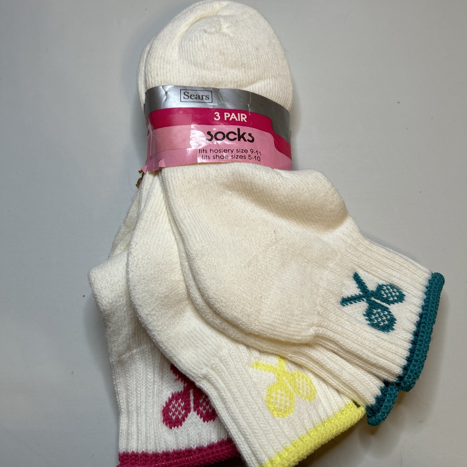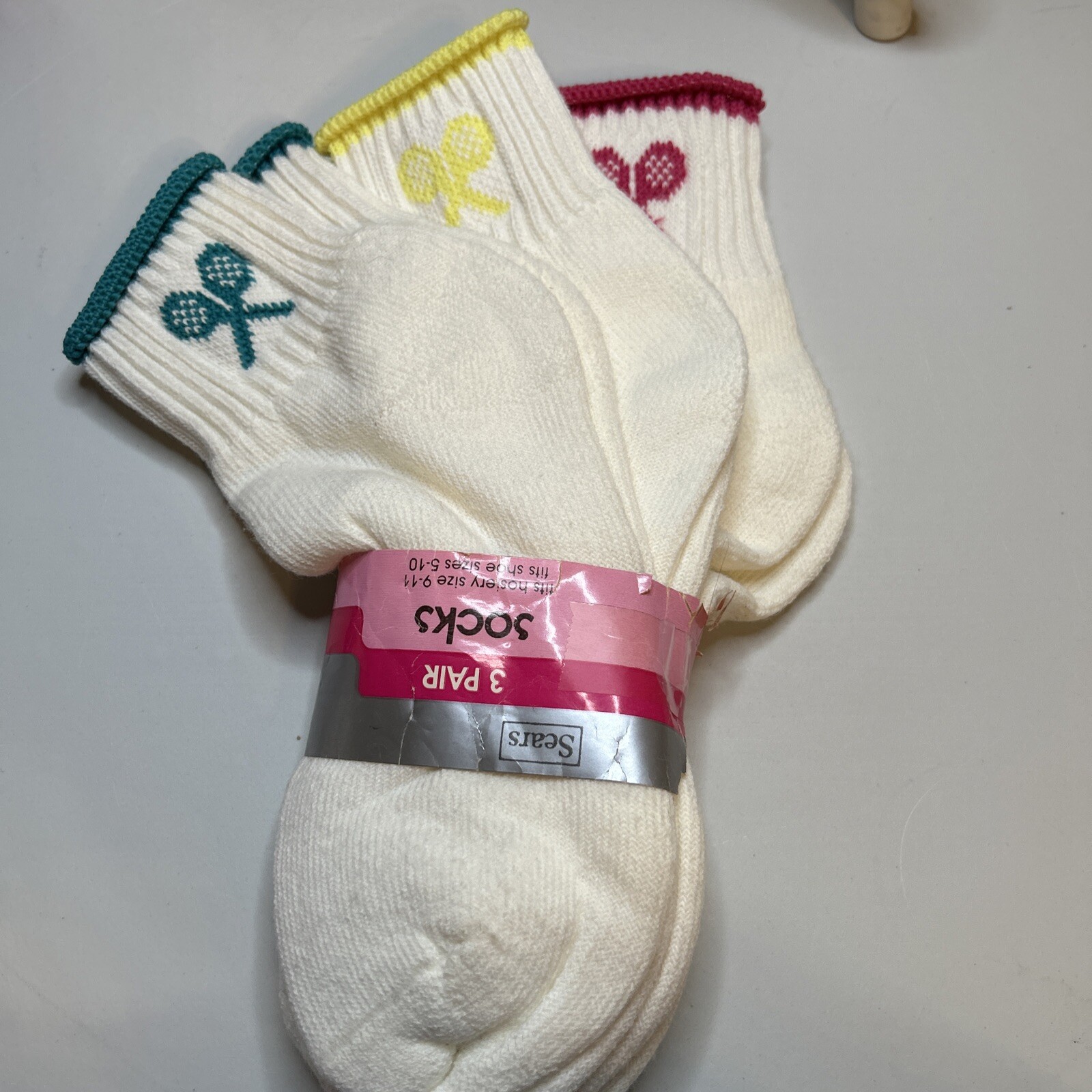 VTG 3 Pack Socks Sears 80s 9-11 Ankle Tennis Orlon Acrylic Nylon Womens NOS 90s.