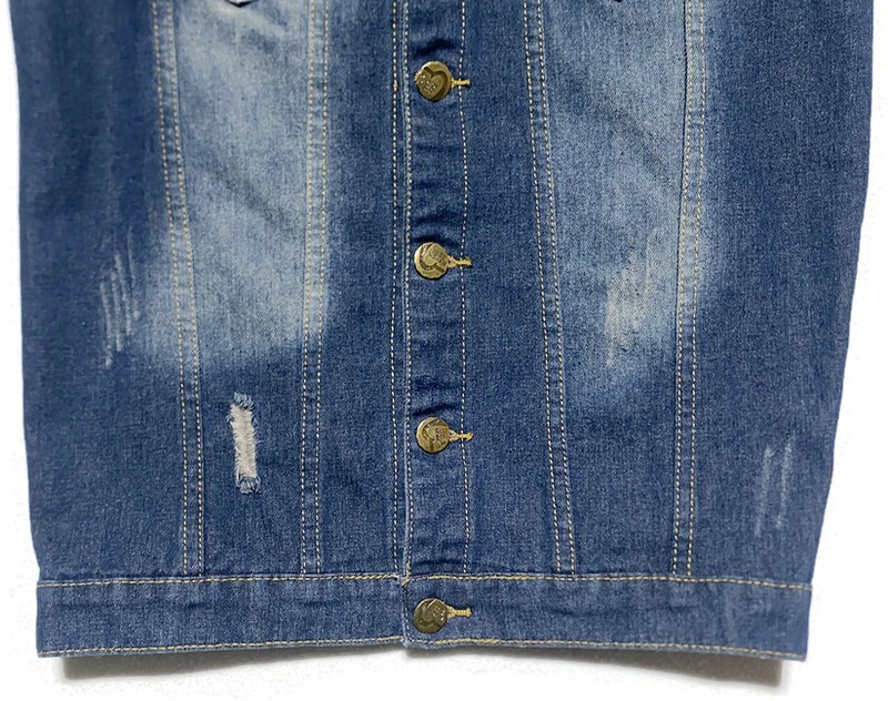 как выглядит Tang Ku Distressed American Flag Vest Youth Size Large Blue Denim Button Up фото