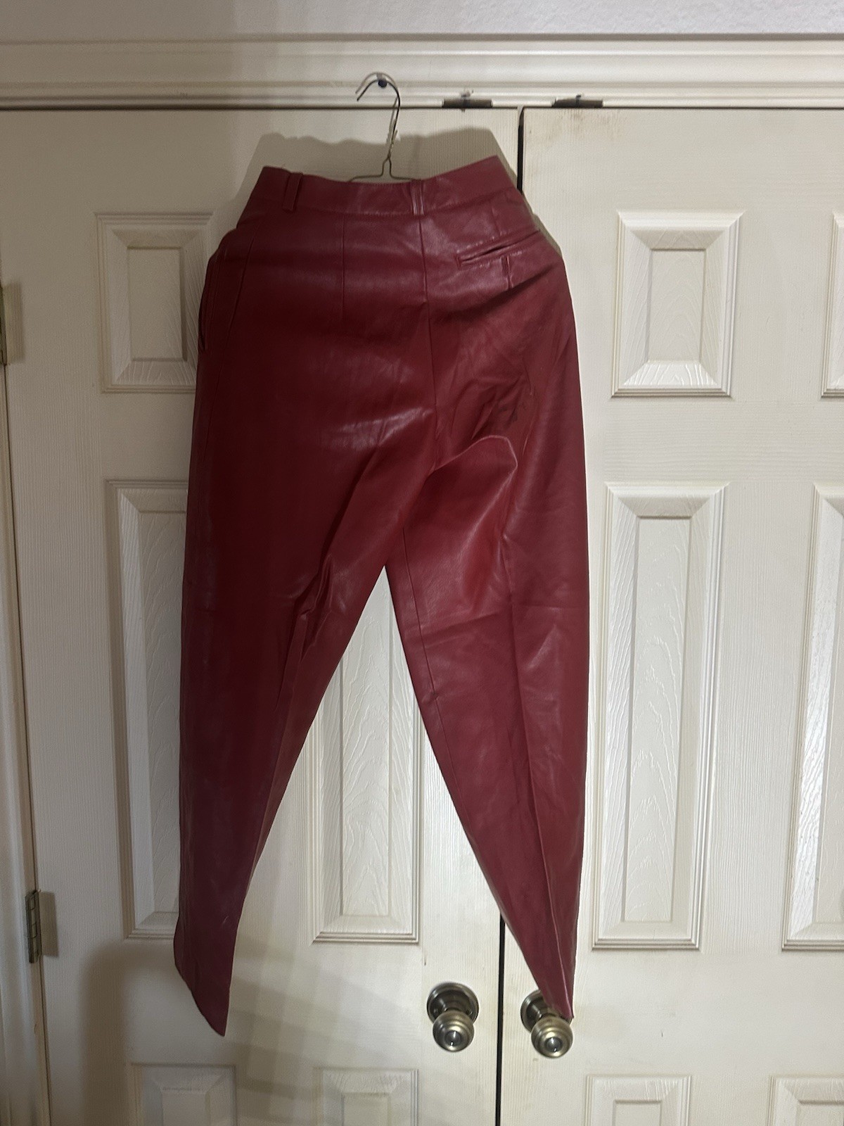 как выглядит Vintage 90s Burgundy Red Leather Pants High Waist Tapered Korea Womens фото