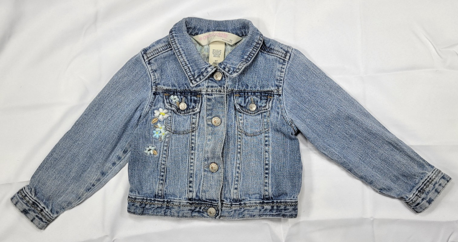 Genuine Kids by Oshkosh Toddler Girls 3T Denim Jean Jacket W Flower Embroidery