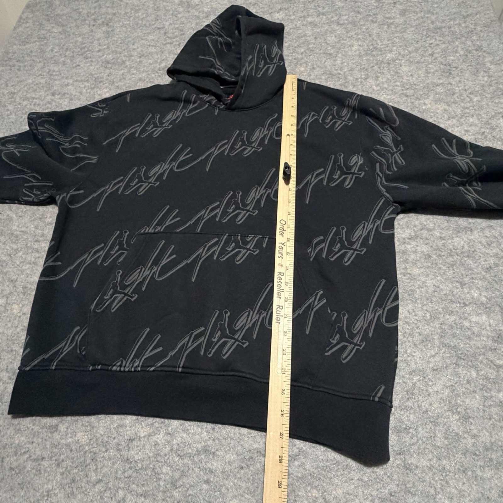 как выглядит Jordan Essential AOP Fleece Pullover Hoodie MENS SIZE LG FB7318-010 Black/Grey фото