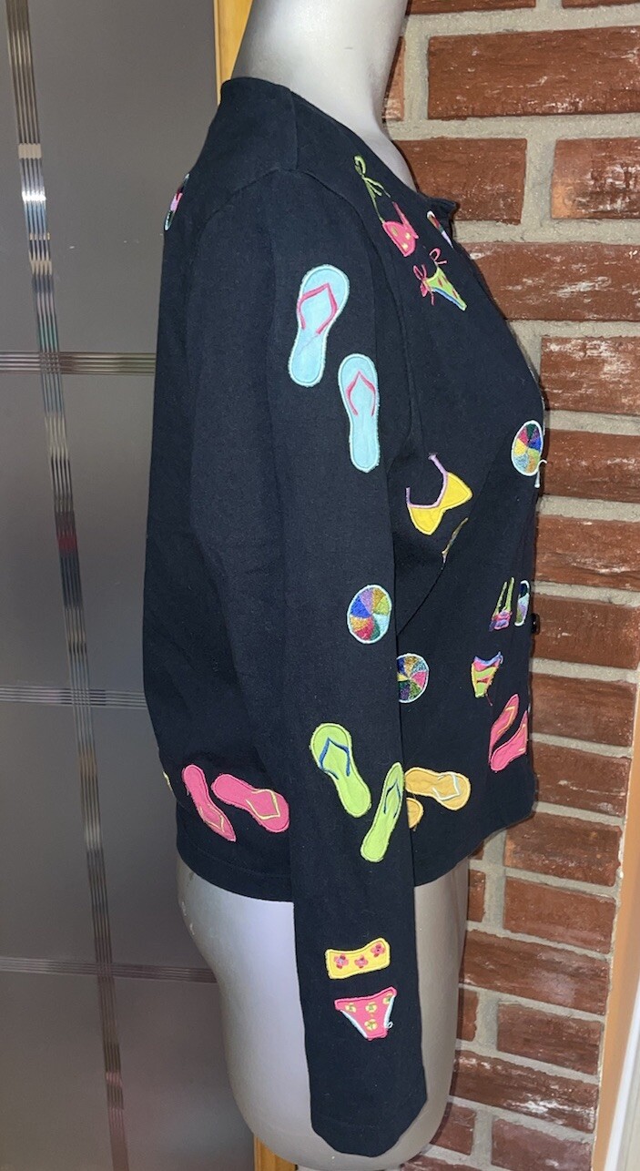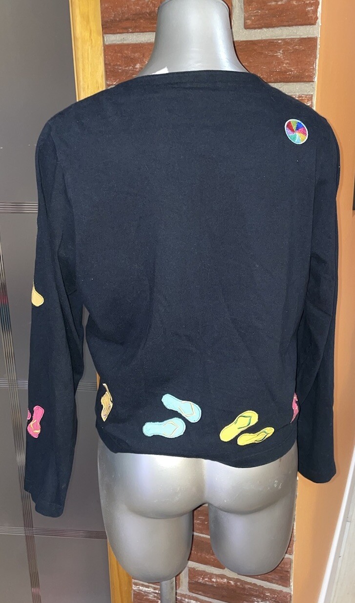 Vtg Michael Simon Lite Button Up Cardigan Ladies S Flip Flops Bikini Embroidered