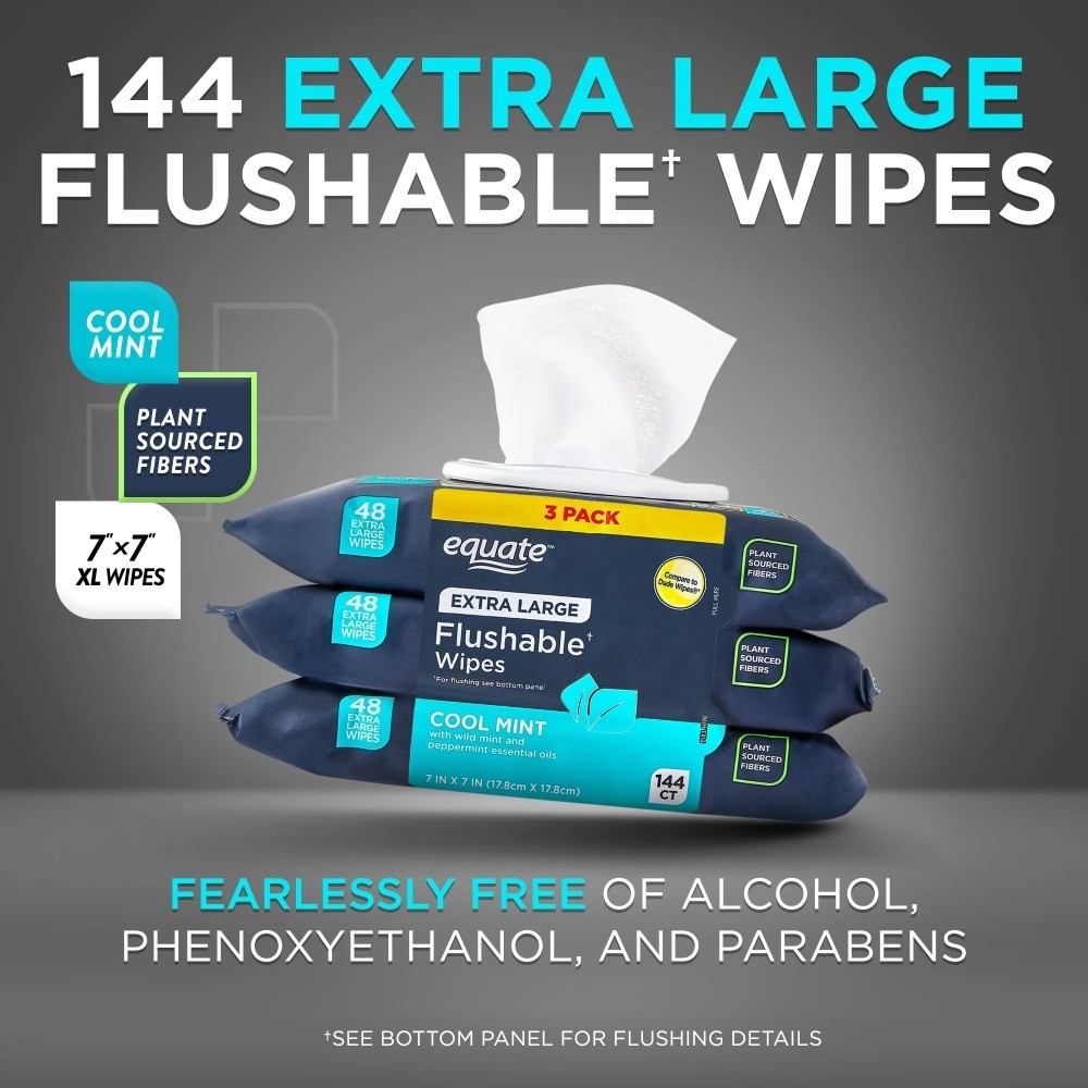 Extra Large Flushable Wet Wipes Refreshing Cool Mint Scent 144 Count 3 Pack