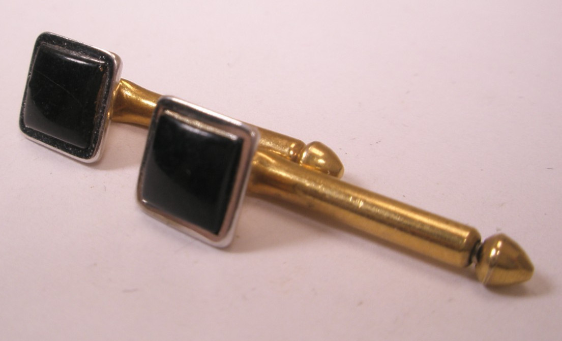 SINGLES 2 1/4 Black Squares Vintage SWANK Formal Tuxedo Prom Shirt Stud b267