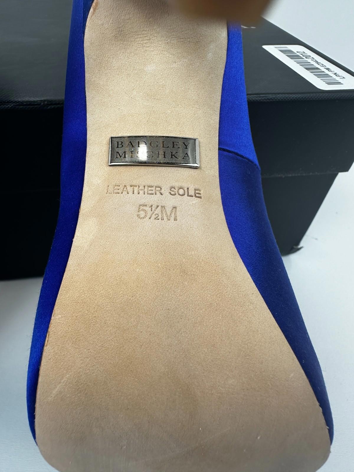 как выглядит Badgley Mischka - Kiara Crystal Pumps, Peep Toe, Sapphire Satin, Size 6, Women