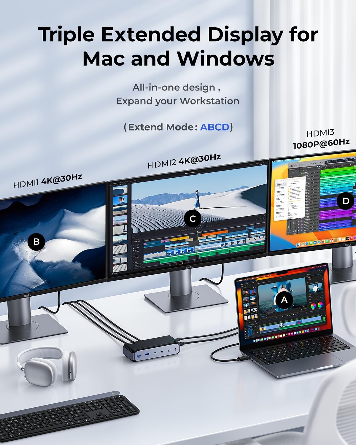 USB C Docking Station Dual Monitor for MacBook Pro/Air, 13-in-1 Triple 4K Dis...