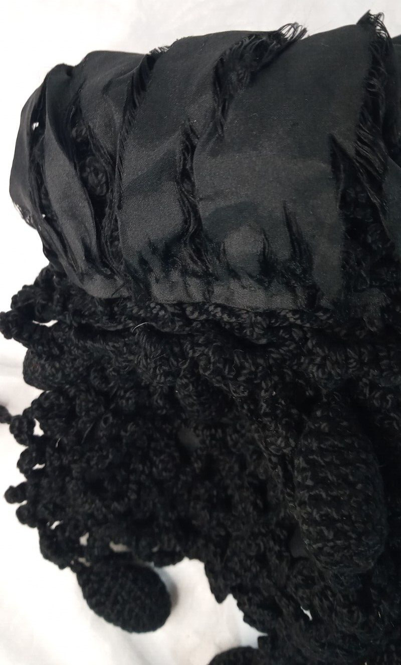 как выглядит Womens Antique Vintage Crochet Purse Bag Drawstring Black Tassels 10" Victorian фото