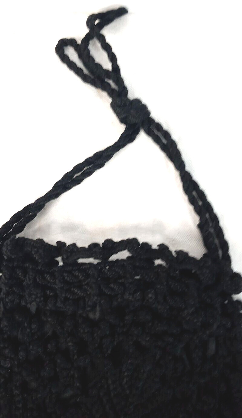 Women's Antique Vintage Crochet Purse Bag Drawstring Black Tassels 10 Victorian