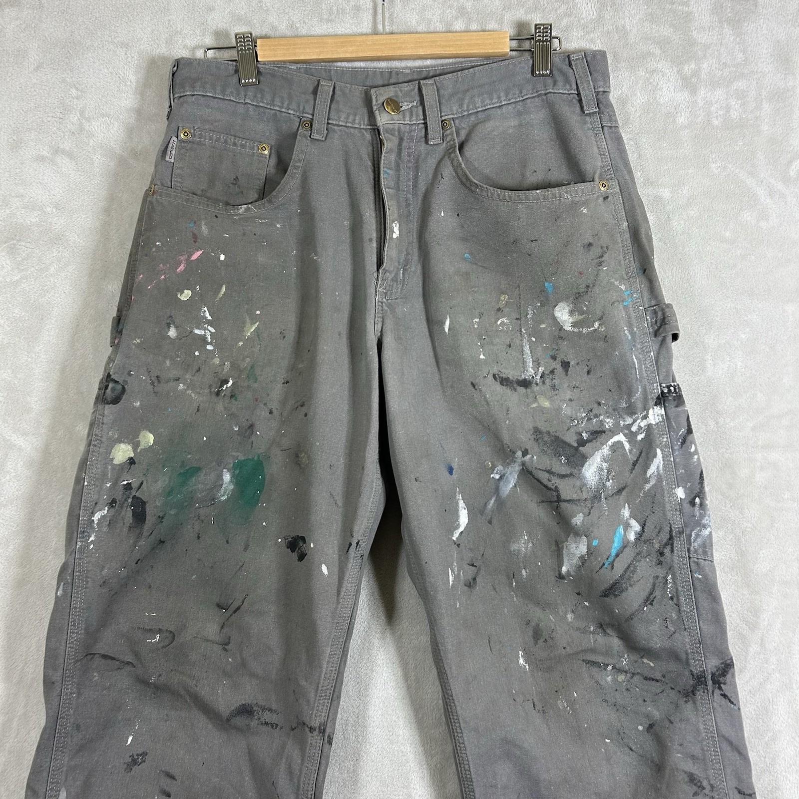 Carhartt B159 CHR Pants Mens 32x32 Paint Splatter Distressed Art Work Carpenter
