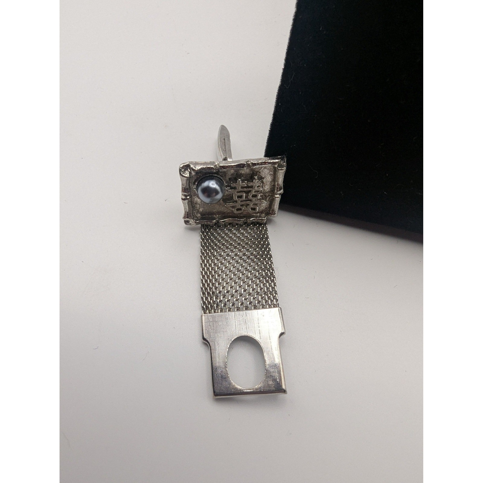 Mens Vintage Tuxedo Cufflink and Stud Set Silver Tone Pearl Inlay Art Deco Style