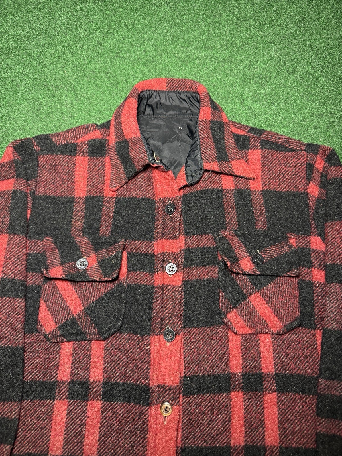 как выглядит Vintage Buffalo Plaid Red Black Wool Blend 70s 80s Sm Button Up Flannel Shirt фото
