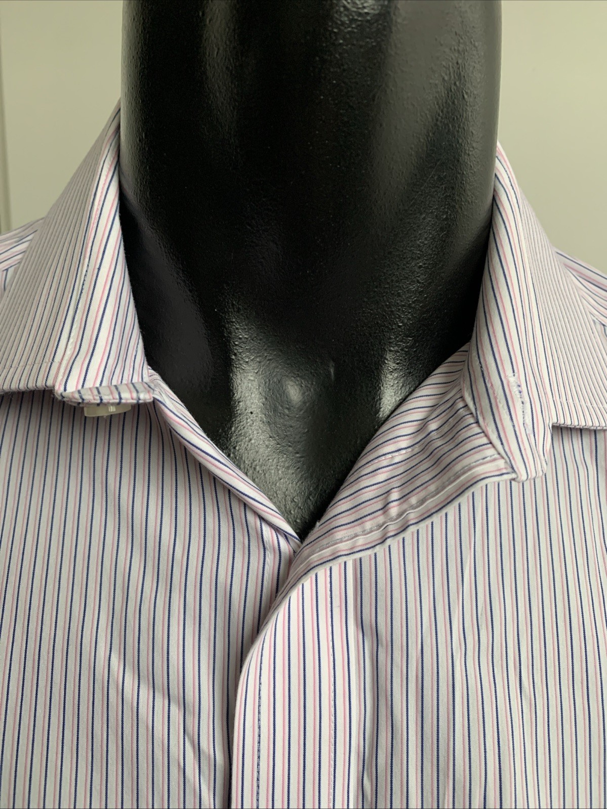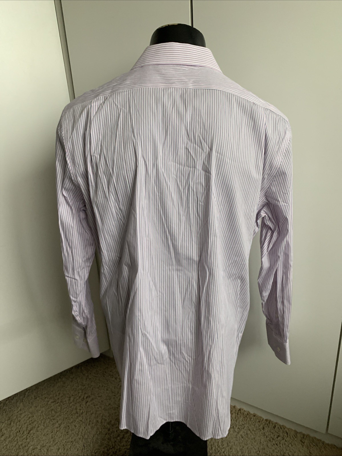 как выглядит Lauren Ralph Lauren men s L 16.5x32/33 slim fit blue/pink striped long sleeve фото