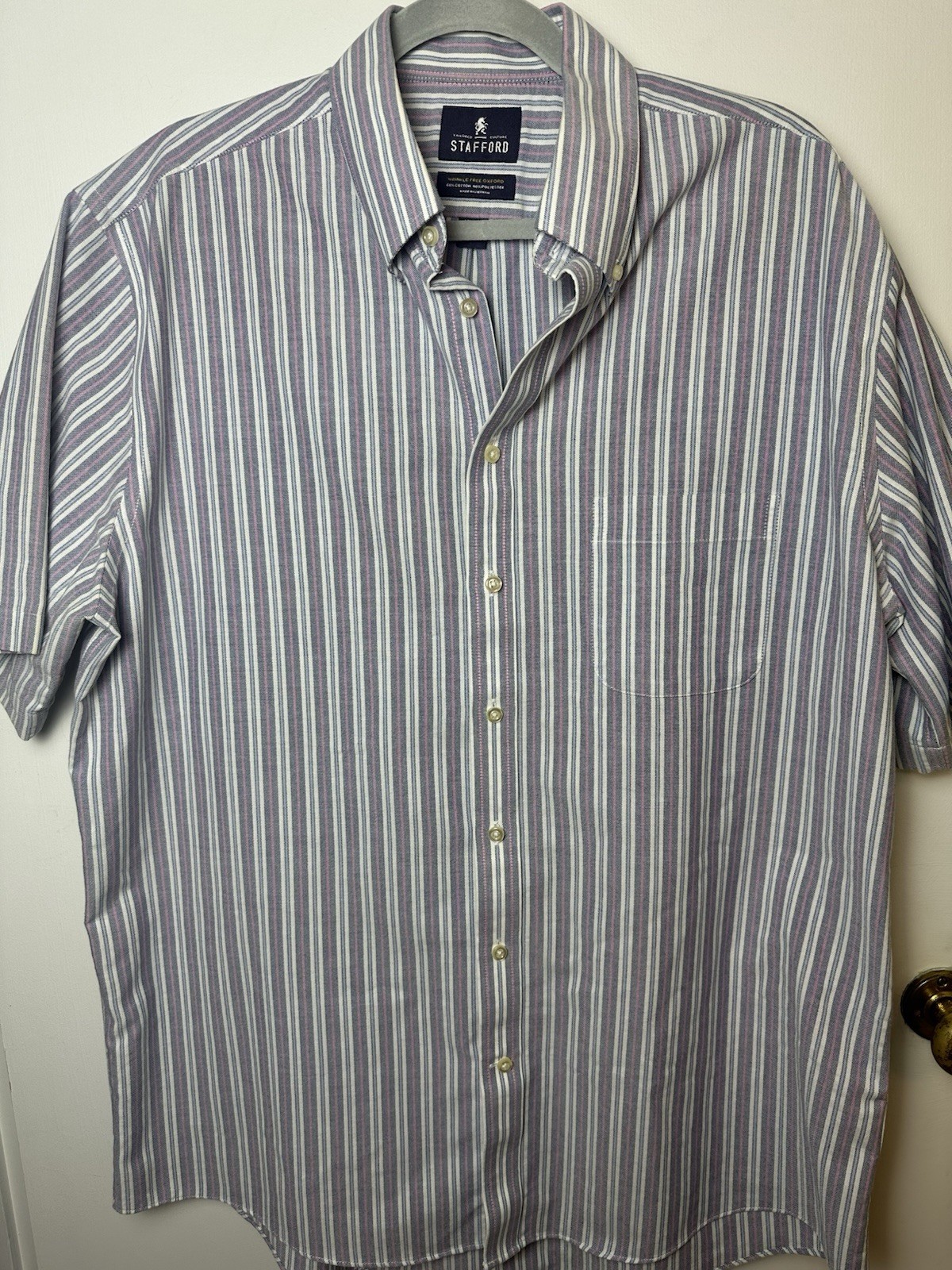 как выглядит Stafford Wrinkle Free Stripe Oxford Short Sleeve Button Down Shirt Mens 17 Large фото