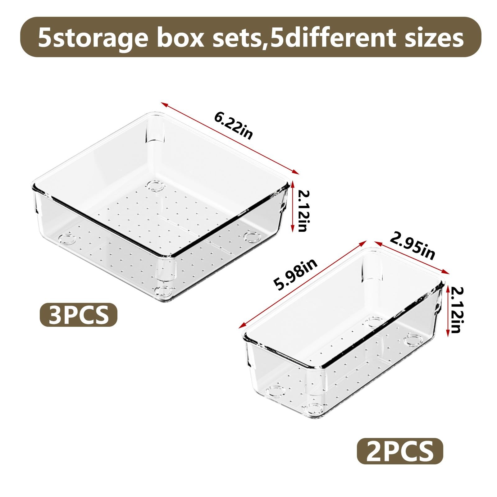 5 PCS Clear Plastic Drawer Organizer Set 2 Sizes Acrylic Non-Slip Storage Bins