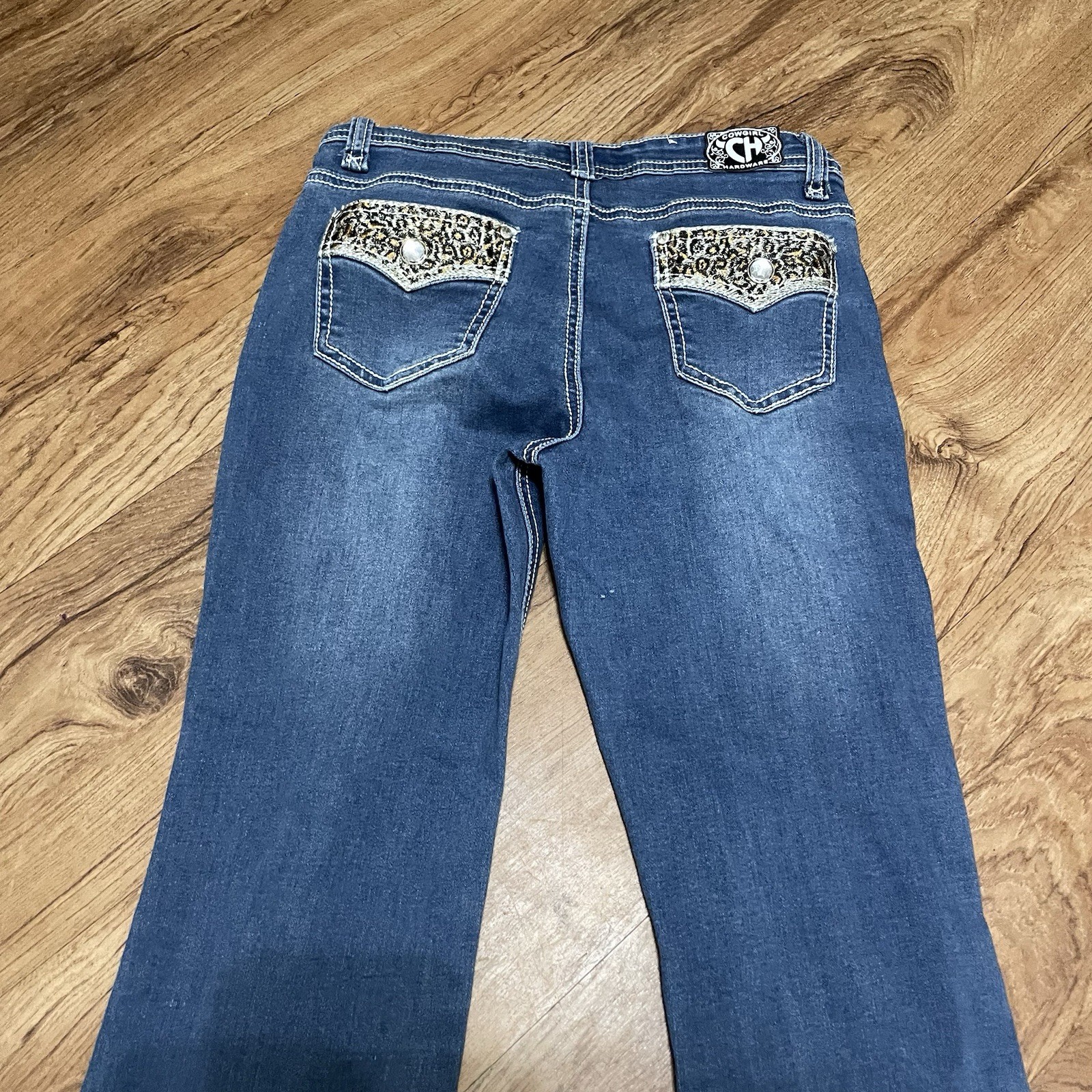 как выглядит Cowgirl Hardware Flare Leg Blue Denim Jeans Girl Youth 16 Bell Bottom Rodeo фото