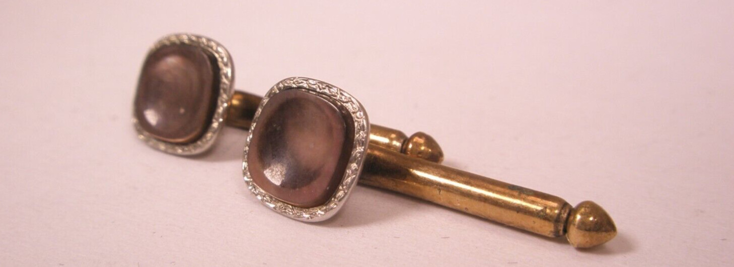 SINGLES 2 5/16 Gray Squares MOP Vintage Formal Tuxedo Prom Shirt Stud c249