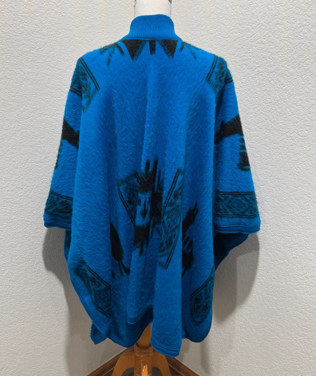 как выглядит Tejidos Ruminahui Cape Poncho Wool Bright Blue LLama Print Relaxed L/XL Equador фото