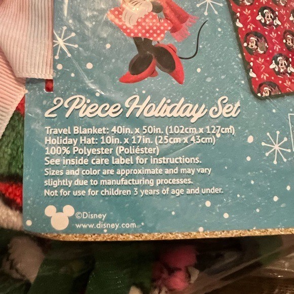 как выглядит Disney 2 PC Holiday Travel Blanket Hat NEW фото