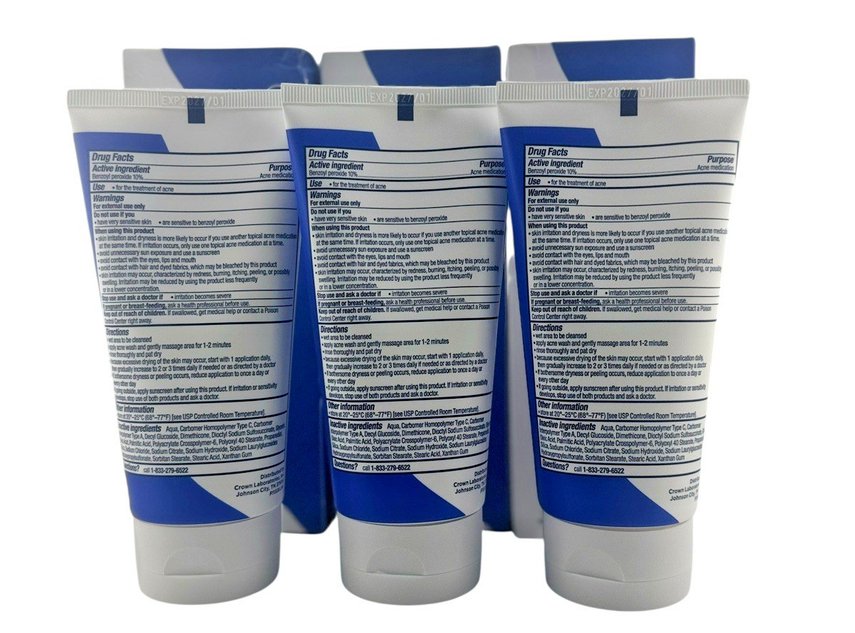 Ingredients: Glycerin, Decyl Glucoside, Dimethicone, Benzoyl Peroxide, Dioctyl Sodium Sulfosuccinate, Carbomer Interpolymer