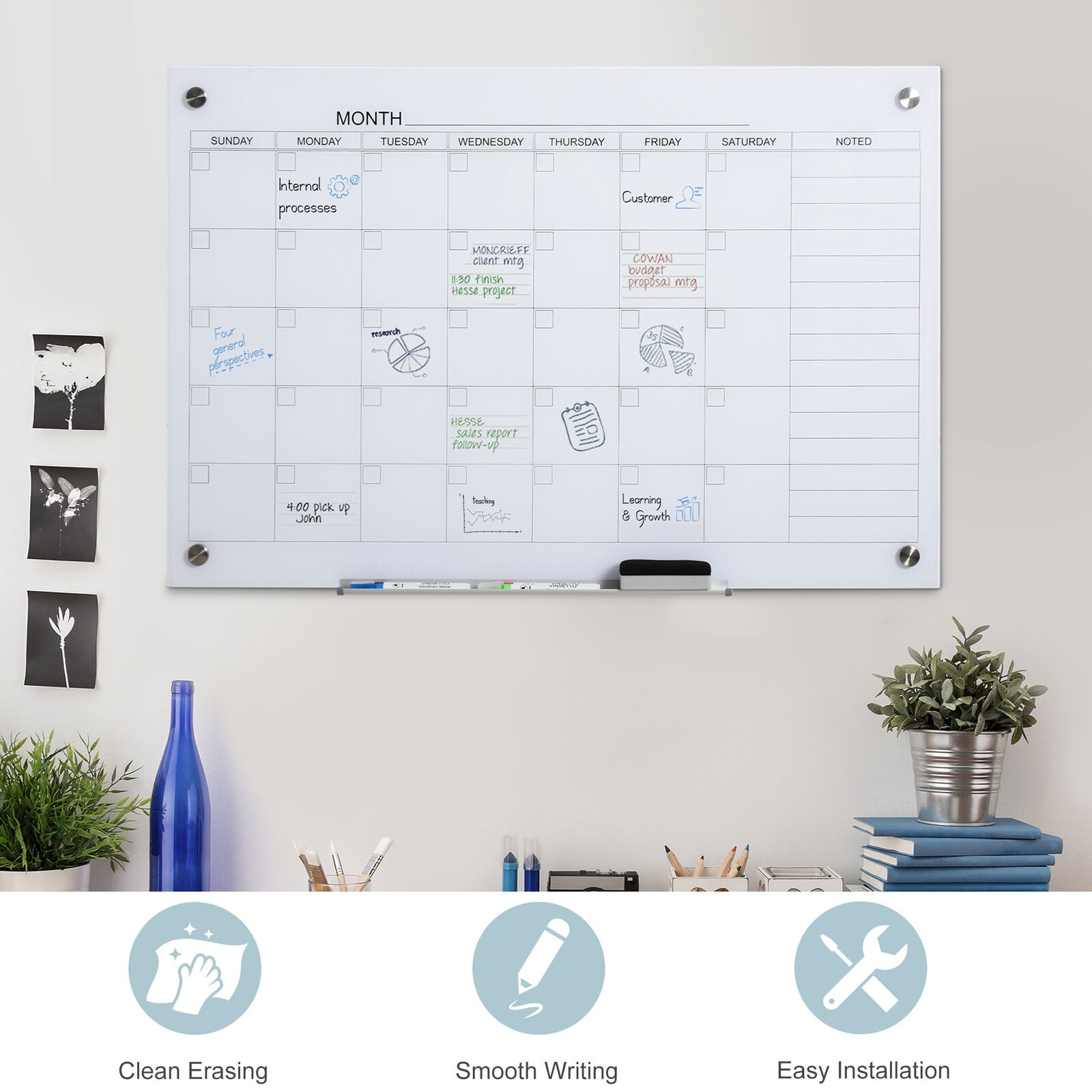 как выглядит 35"x23" Dry Erase Wall Calendar Glass Whiteboard Monthly Planner for Homeschool фото