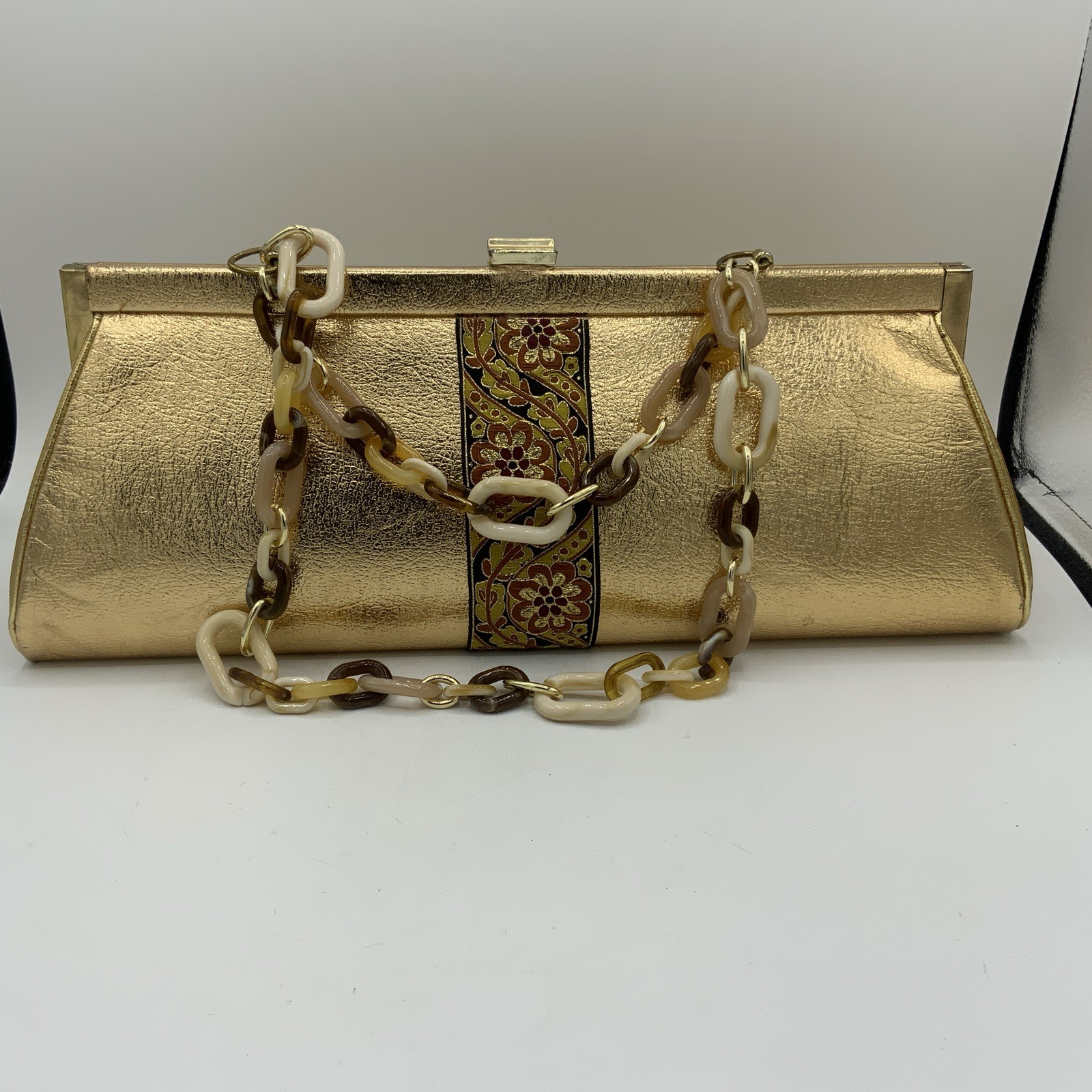 Vintage Gold Evening Bag Clutch Chain Handle Nice Lining