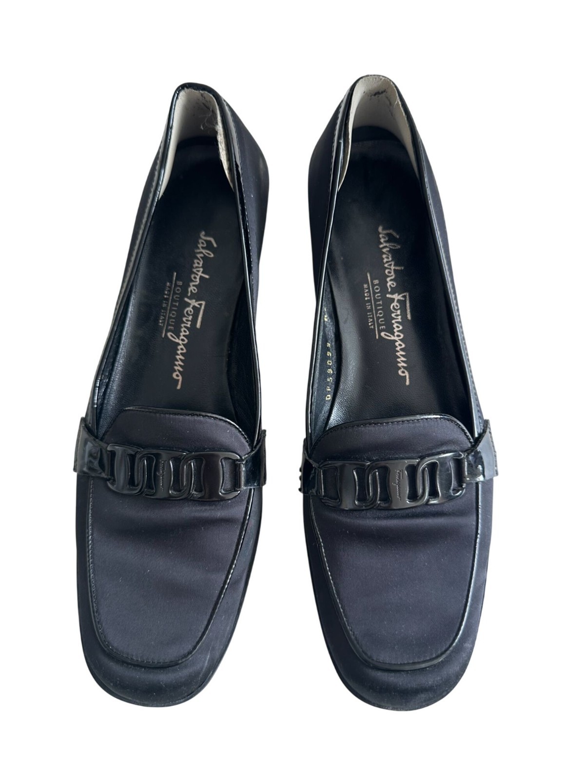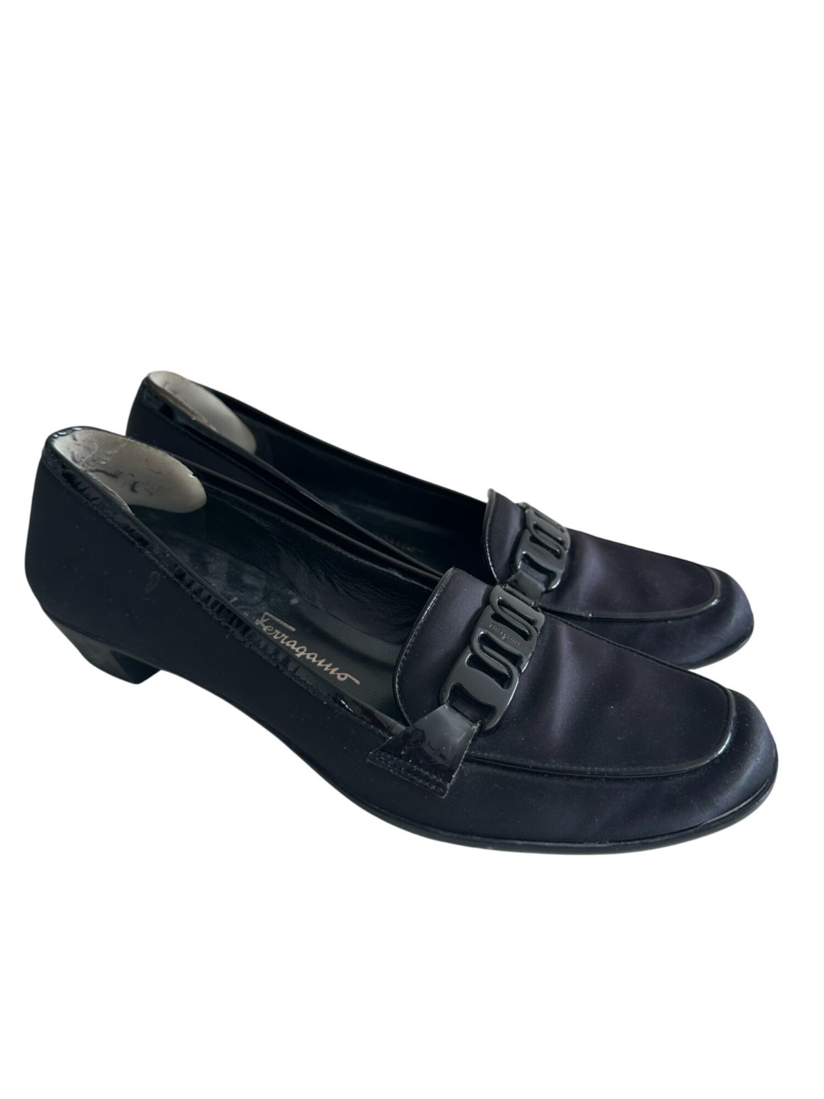 как выглядит SALVATORE FERRAGAMO Black Fabric Logo Loafers Size 7 фото
