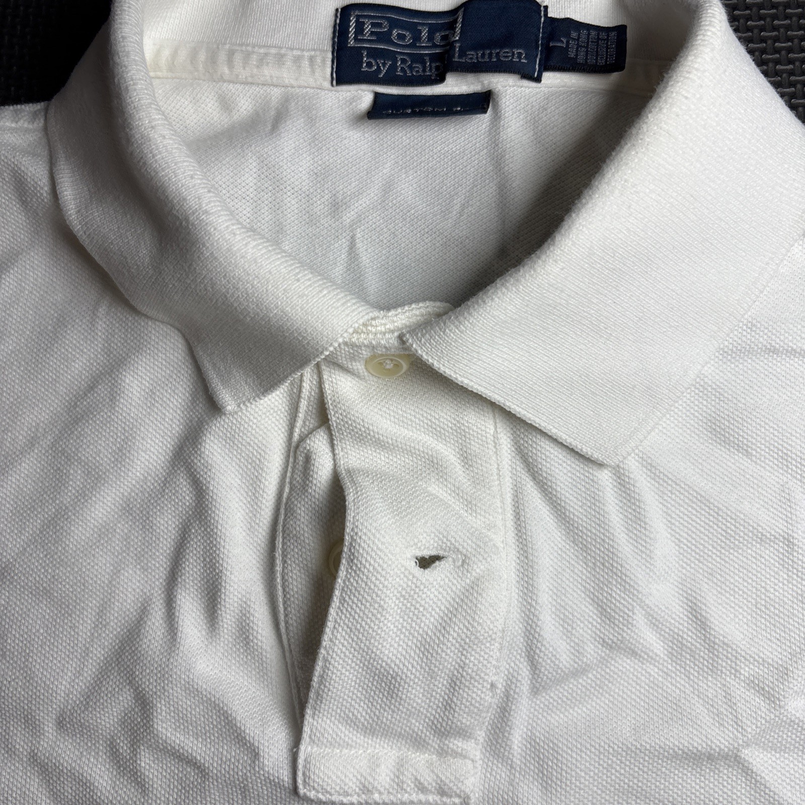 Polo Ralph Lauren Mens Large White Classic-Fit Short Sleeve Polo Vintage Pony