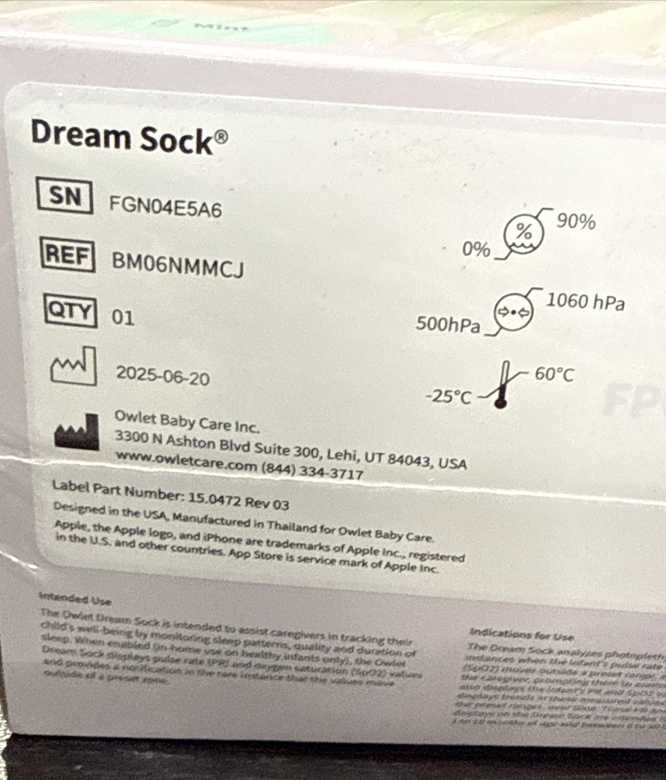 как выглядит Owlet Dream Sock Smart Baby Monitor Mint BM06NMMCJ - New in Box фото