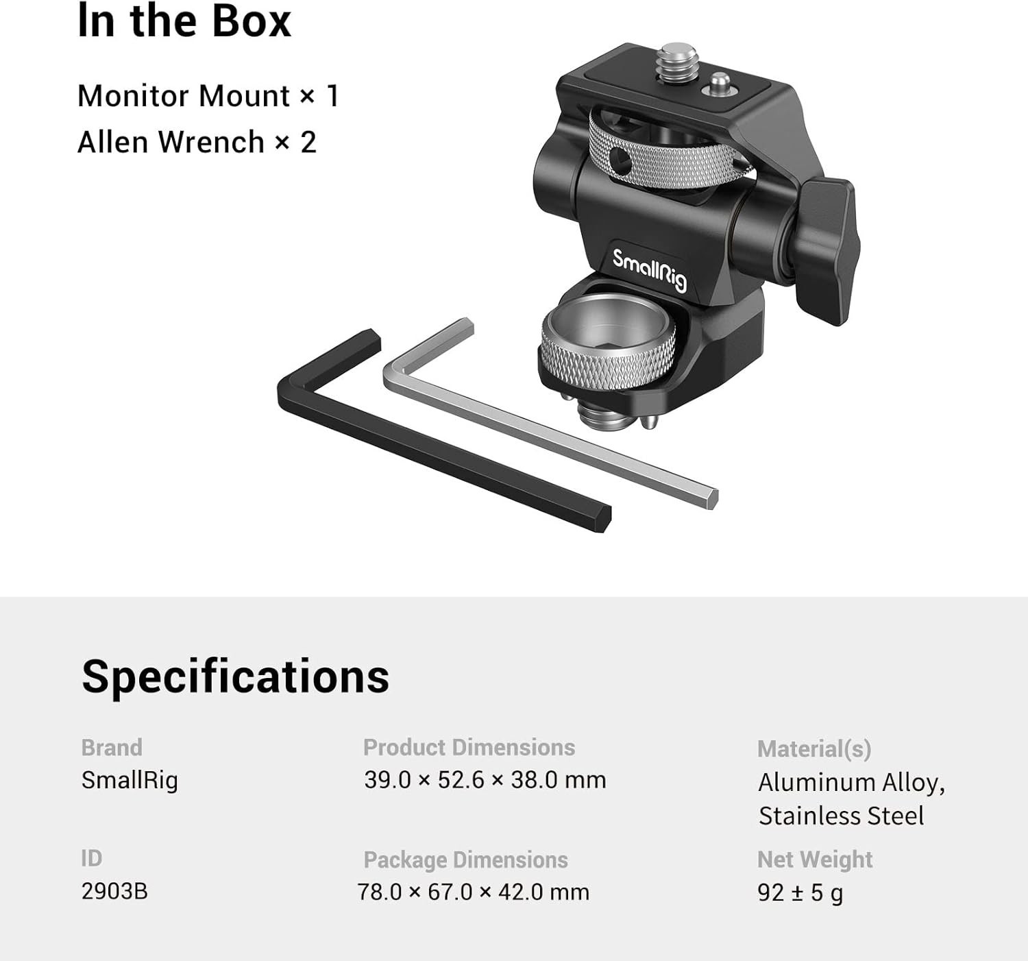 Особенности: Adjustable Mount, 360° Swivel, 180° Tilt, Anti-Twist Design, Quick Tightening Knob, Multiple Threaded Holes, CNC-Machined Aluminum Alloy, Sturdy Construction, Easy Monitoring