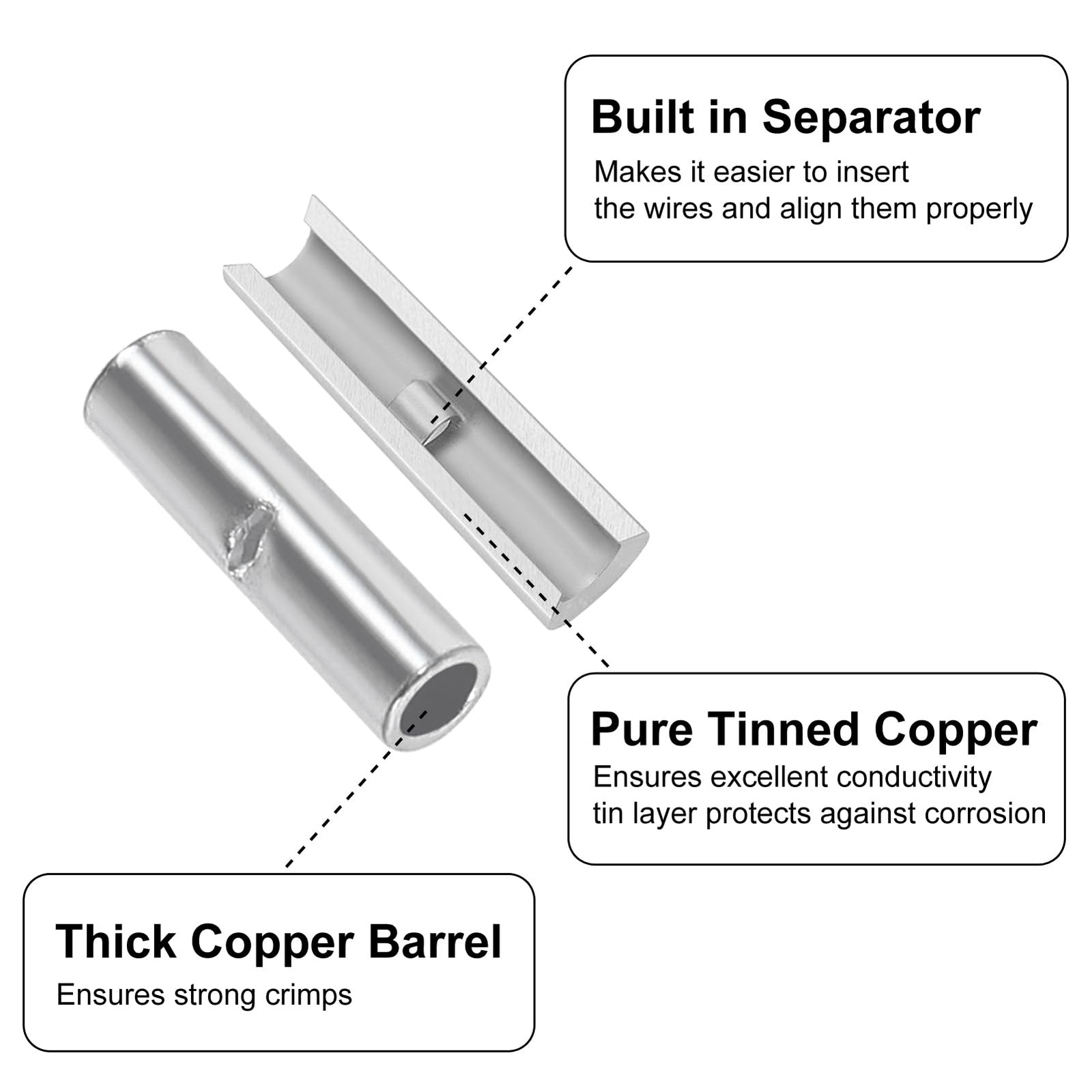 100pcs Non Insulated Butt Connectors Kit Butt Splice Connectors Uninsulated C...