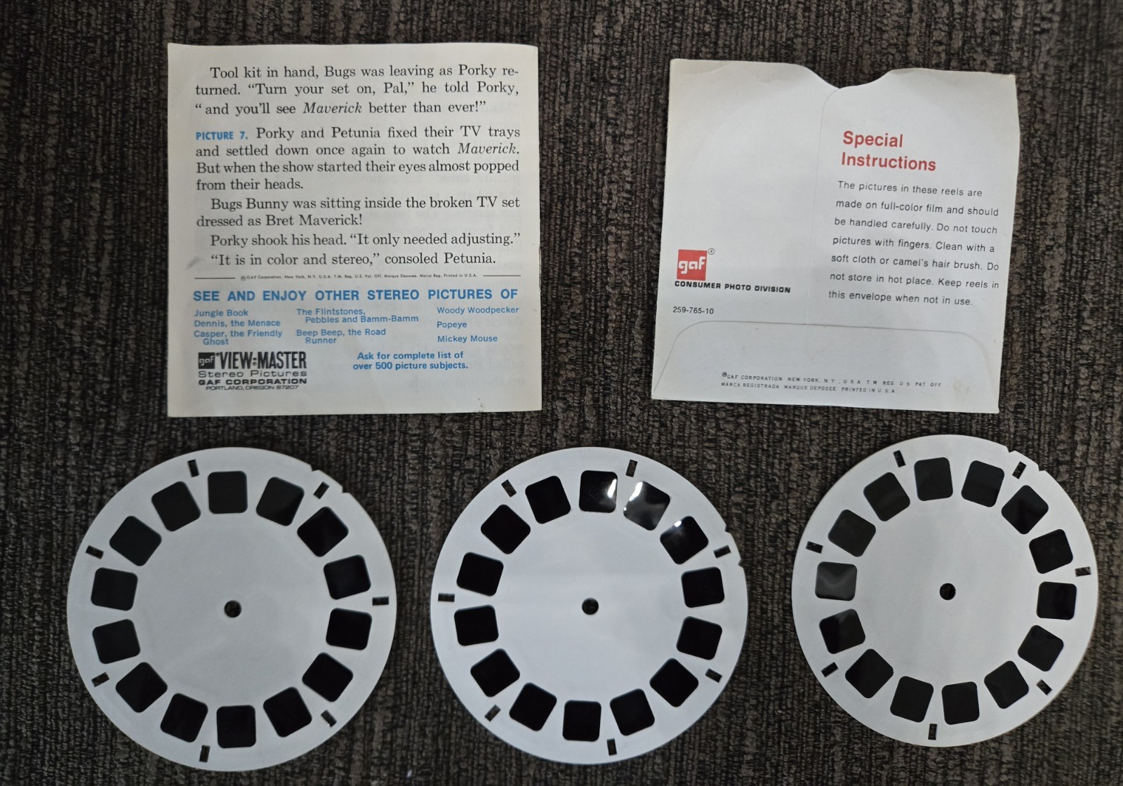 Vintage View Master Bugs Bunny w/Daffy Duck Porky Pig Booklet, Sleeve, 3 Discs