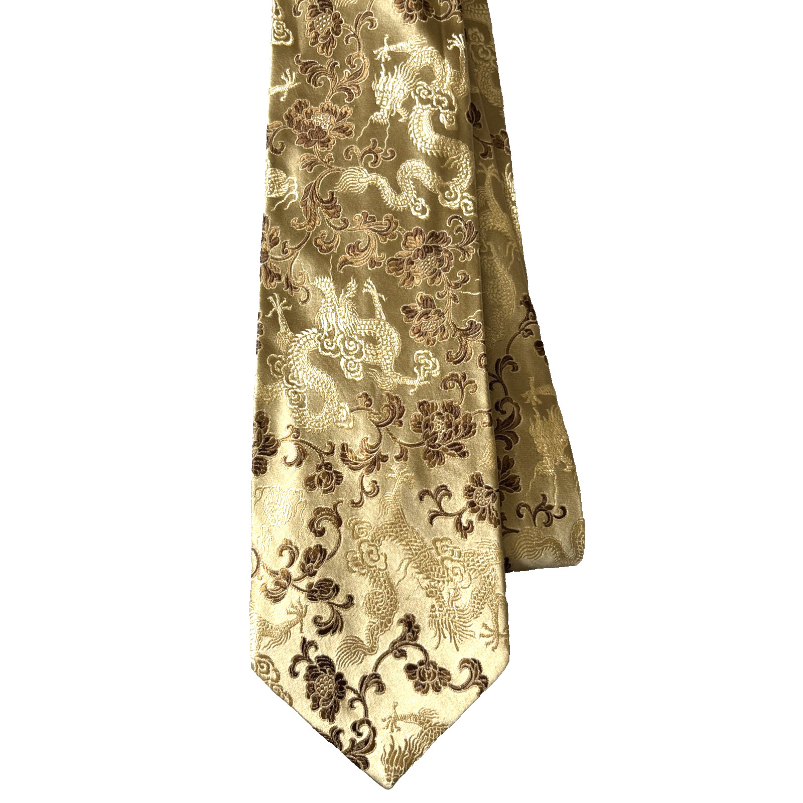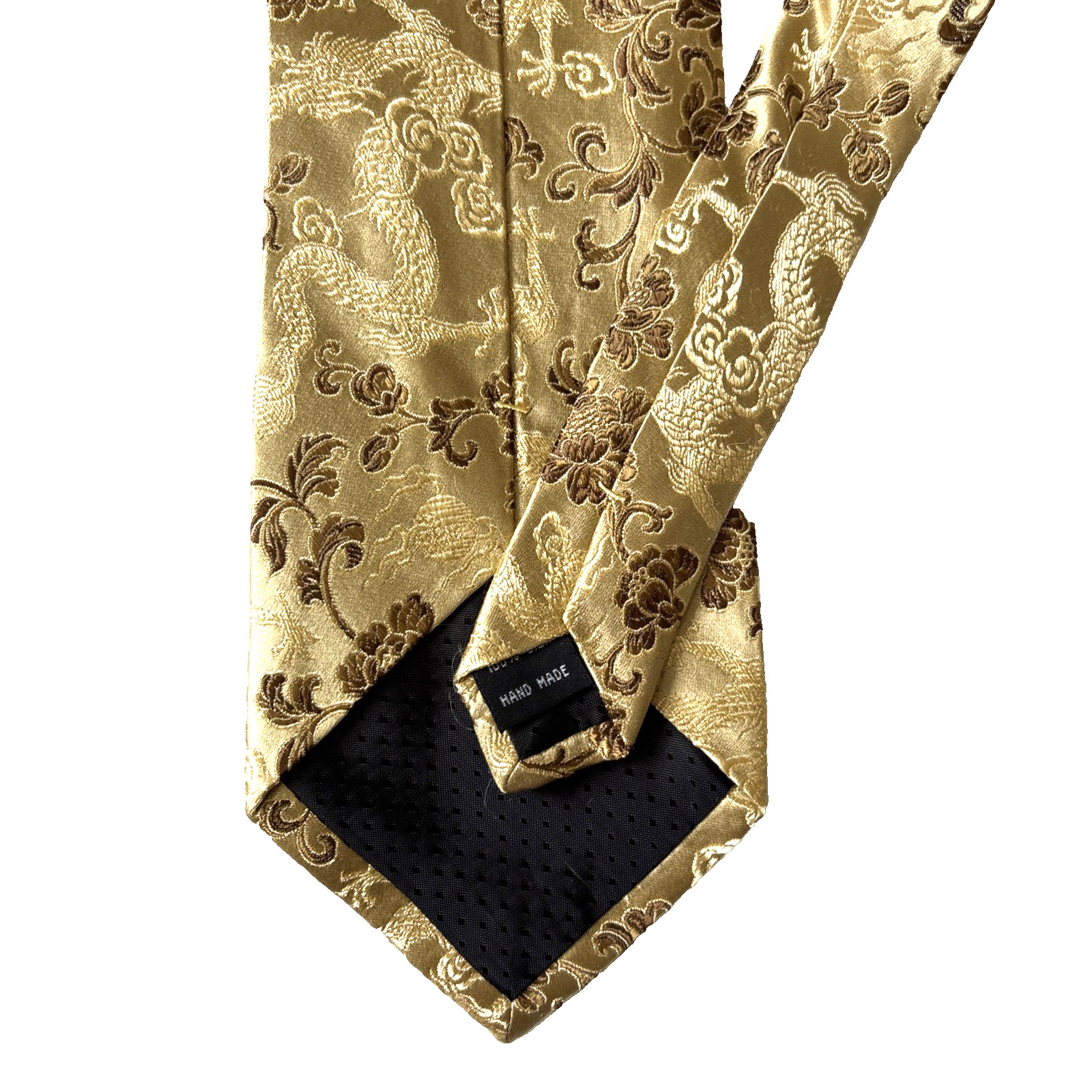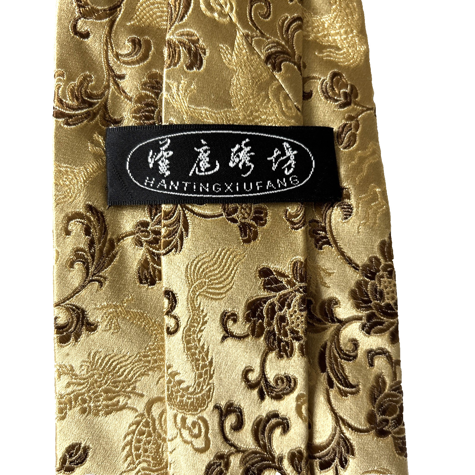 Hantingxiufang 100 Silk men's Tie Dragon flowers on Gold Luxury brocade 57x4