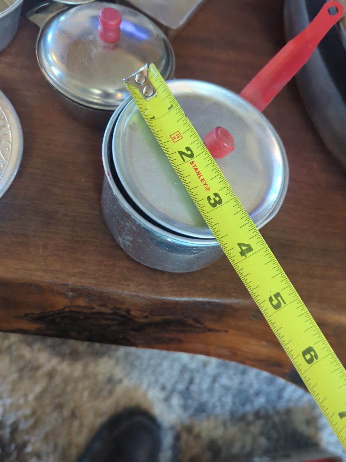 как выглядит Rare Vint Lot Of Aluminum Play Dishes Plates Pans MCM Toy Kitchen Cookware 3140 фото