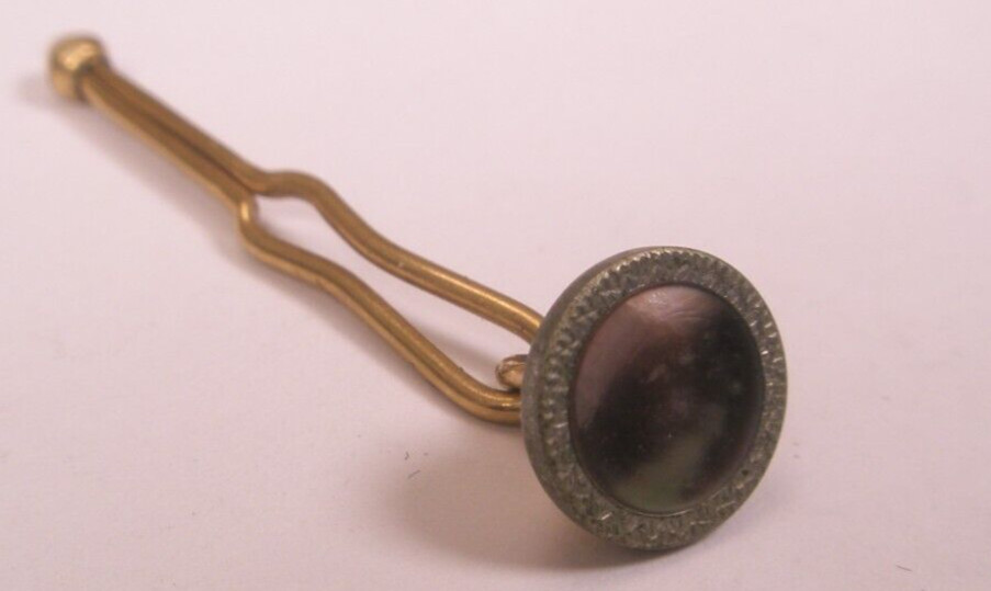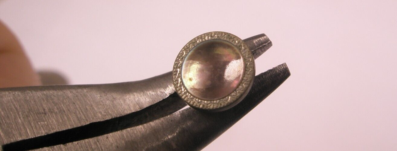 SINGLES 1 5/16 Gray Round MOP Gold Plate Vintage Formal Tuxedo Shirt Stud c150