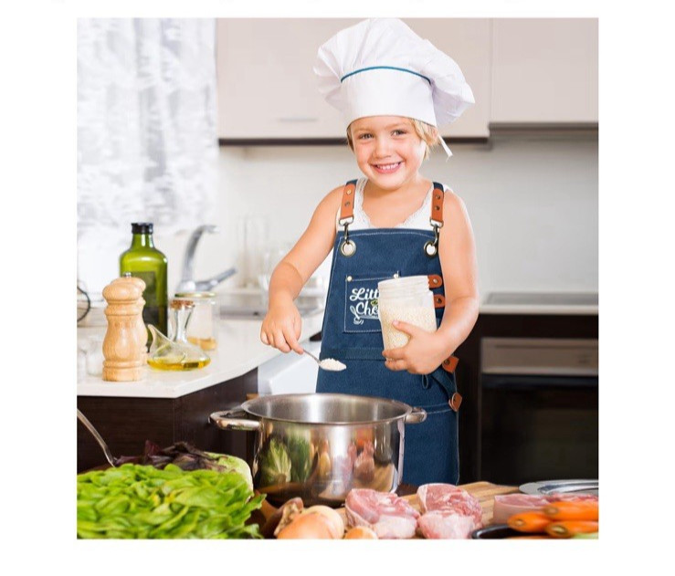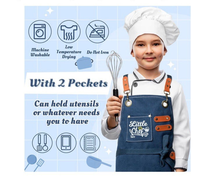 Kid Apron - Adjustable Blue Little Chef Children Kitchen Waterproof Canvas Apron