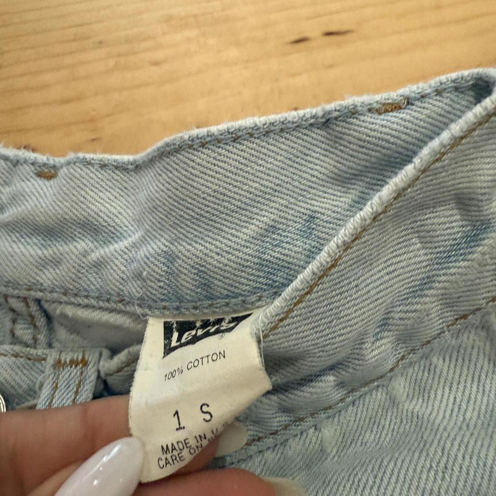 как выглядит Vintage Youth Light Wash Red Tab Levi s Cutoff Shorts фото