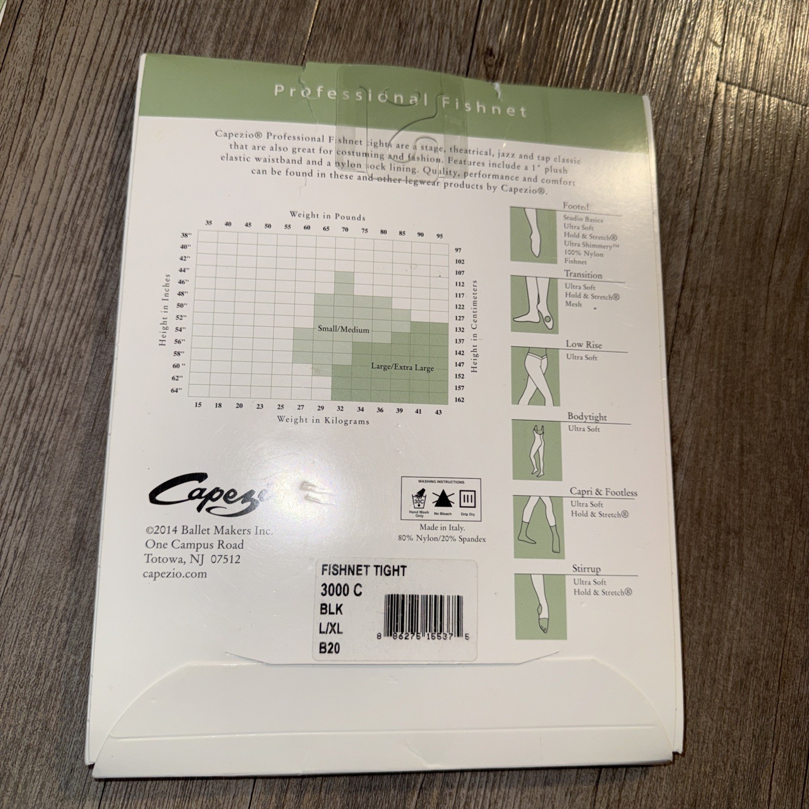 Capezio 3000 C Professional Fishnet Tights Youth Black Size Large XL L/XL NEW