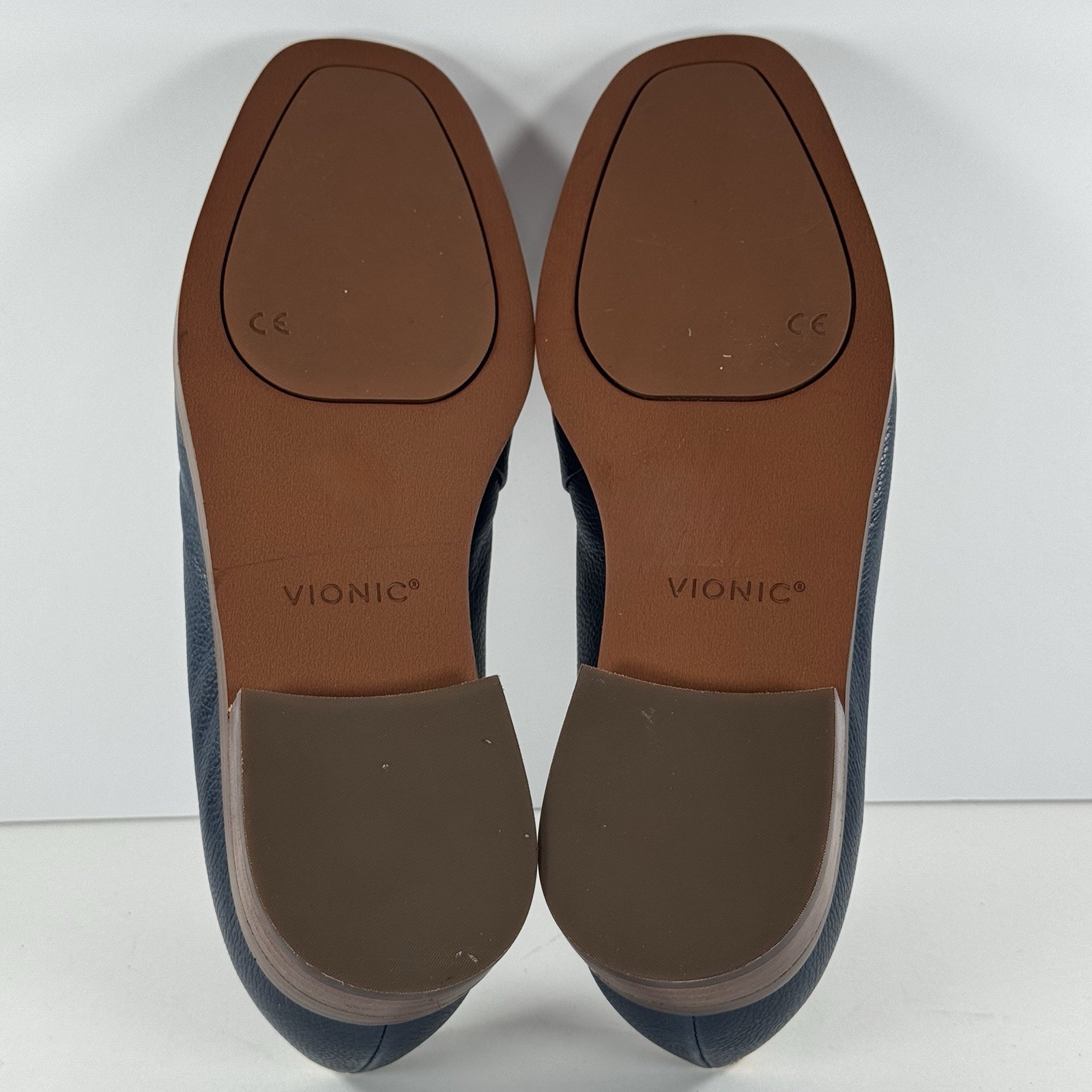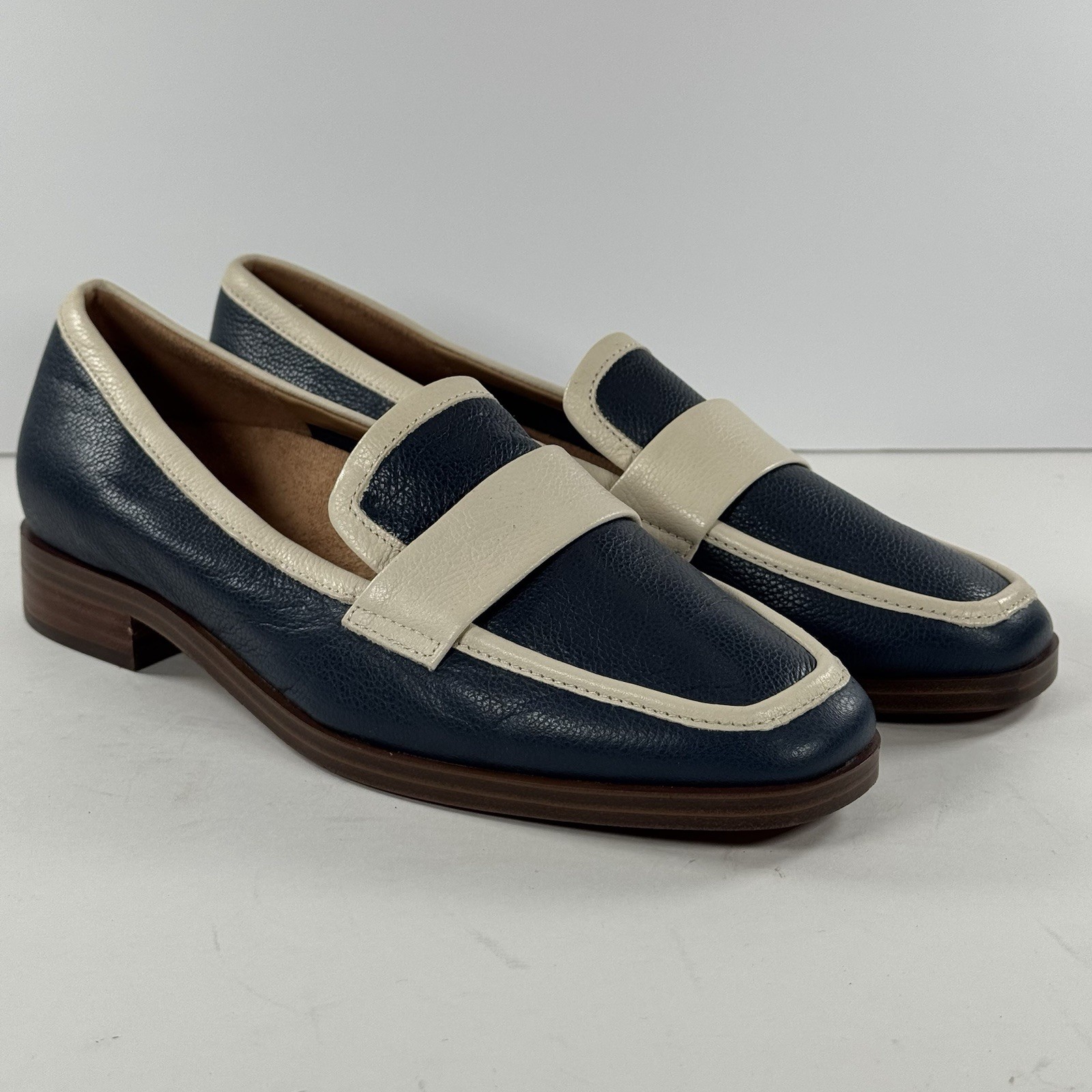 Vionic Sellah II Navy Leather Square Toe Loafer with Cream Trim Women s Size 6.5