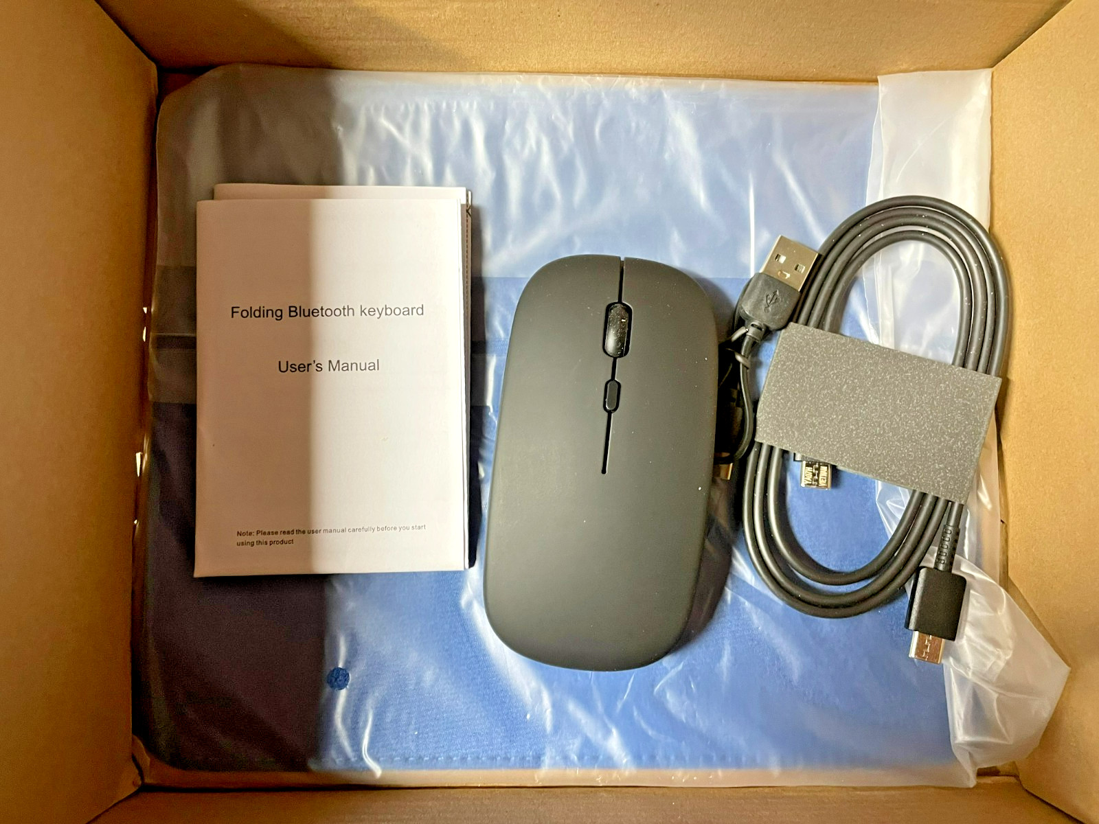 как выглядит Folding Bluetooth Keyboard and Mouse 360 Rotatable Metal Desk Stand With Bag фото