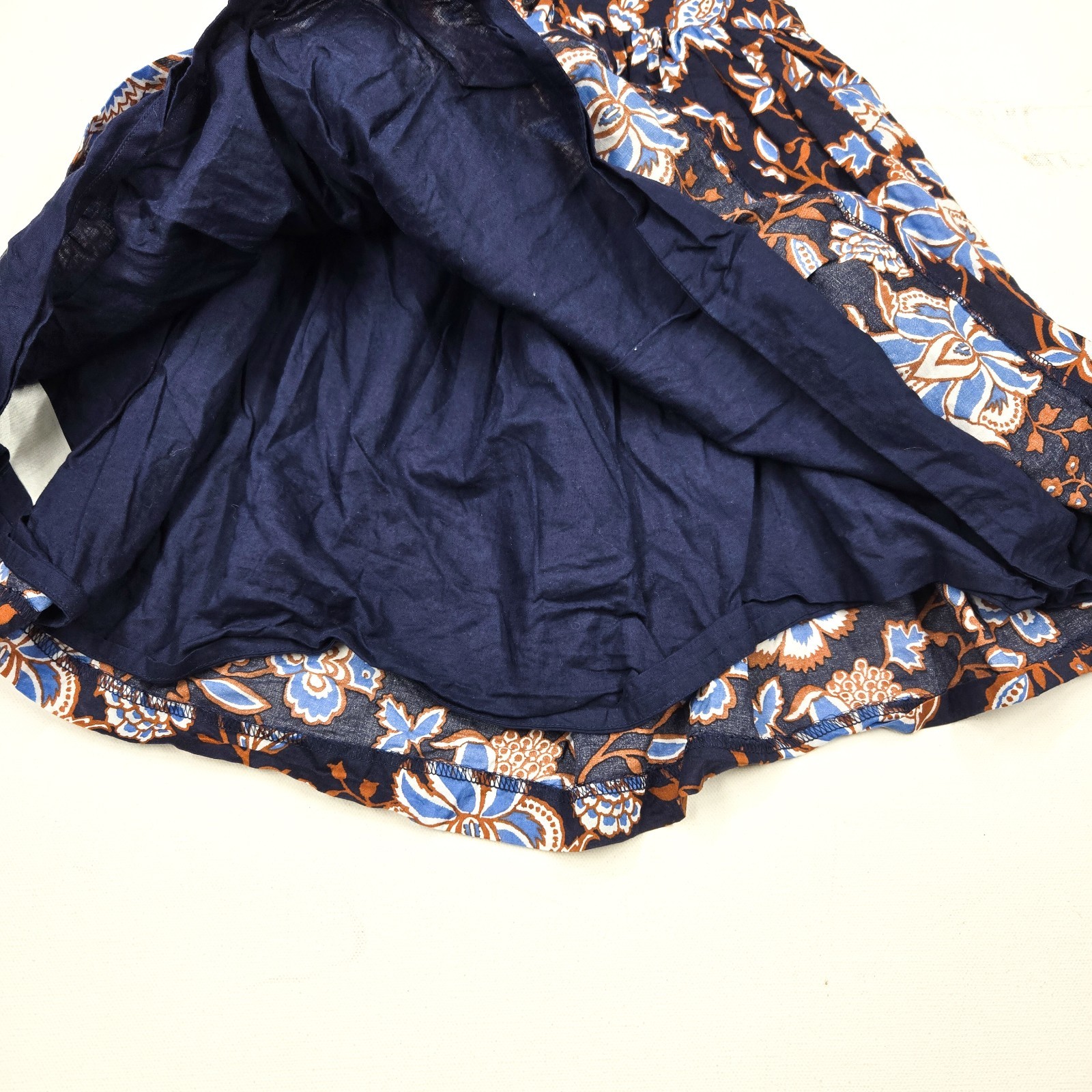 как выглядит Janie and Jack Paisley Floral Bow Swing Dress Size 3 Blue Brown Summer Lined фото