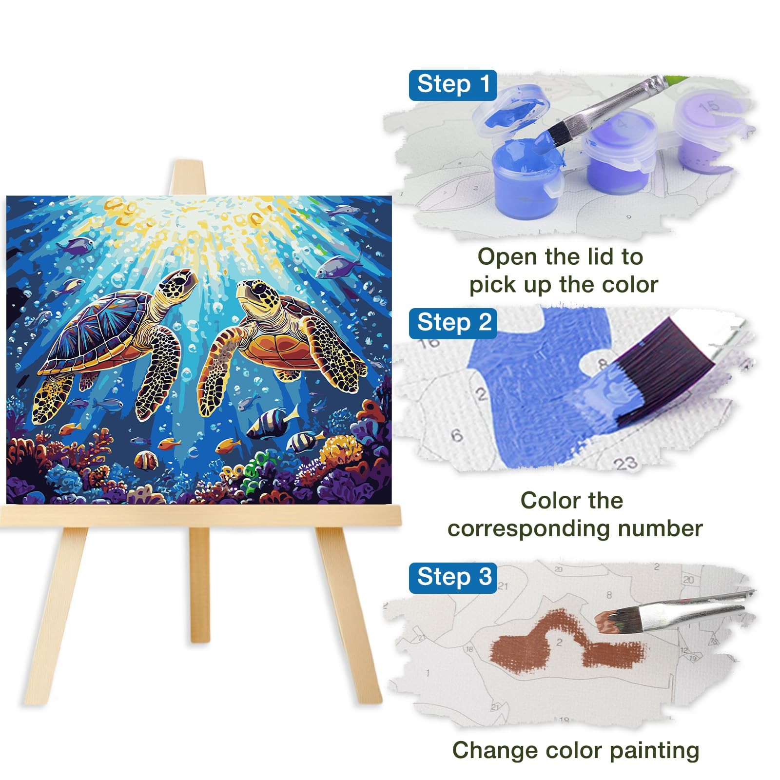 Blue Two Turtles Paint by Numbers Kit for Adults Beginners 20x16 Inch Art