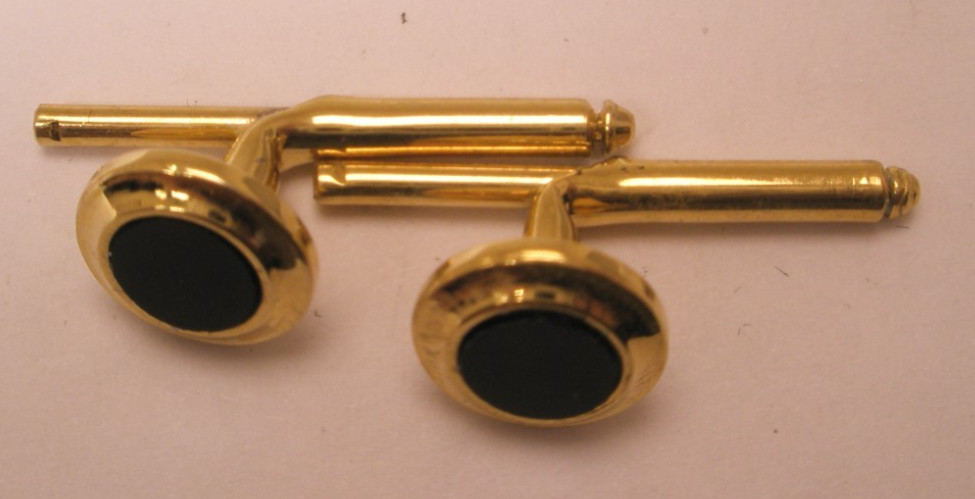 SINGLES 2 3/8 Black Gold Tone Round Vintage Formal Tuxedo Shirt Stud b285